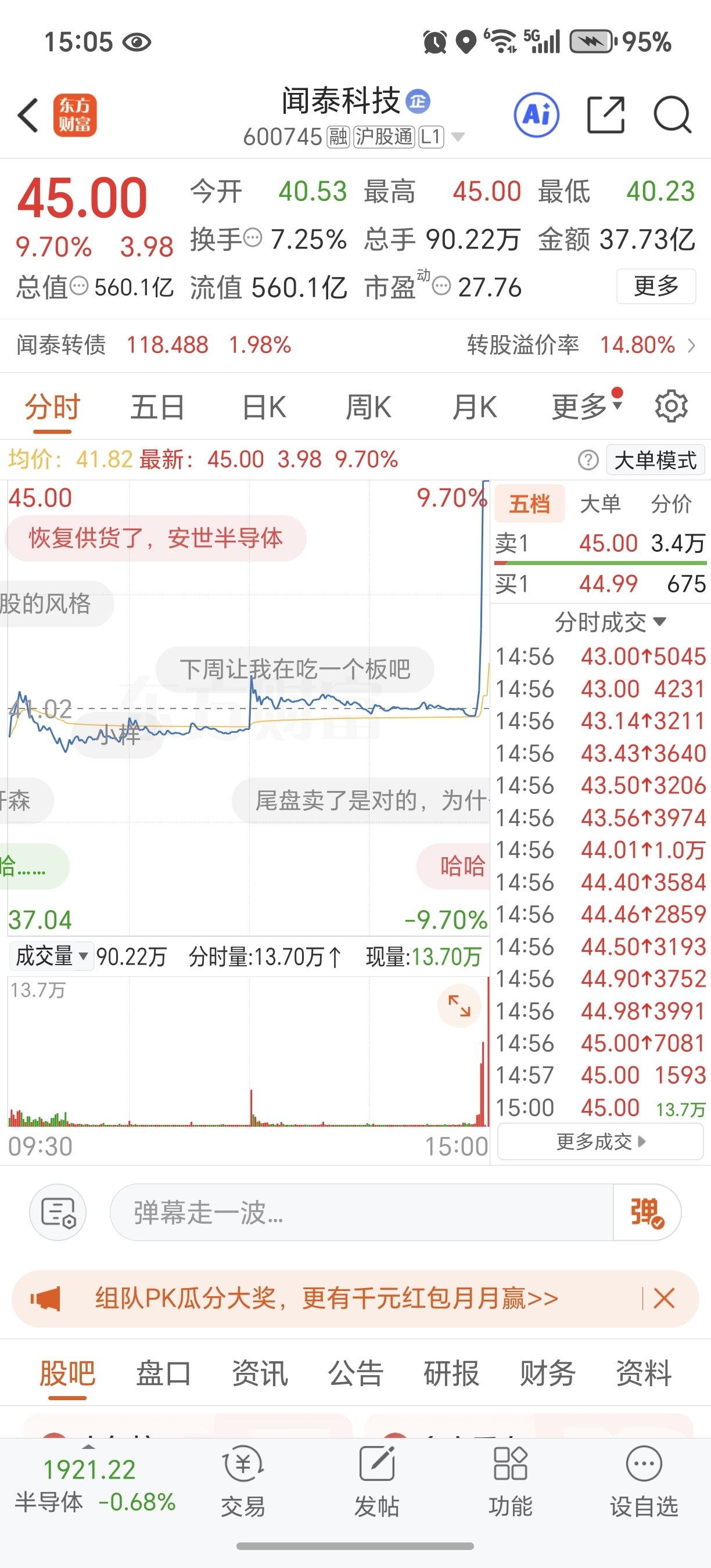 温馨提示: 1.根据《证券法》规定,禁止编造、传播虚假信息或者误导性信息,扰乱证券市场;2.用户在本社区发表的所有资料、言论等仅代表个人观点,与本网站立场无关,不对您构成任何投资建议。用户应基于自己的独立判断,自行决定证券投资并承担相应风险。《东方财富社区管理规定》
