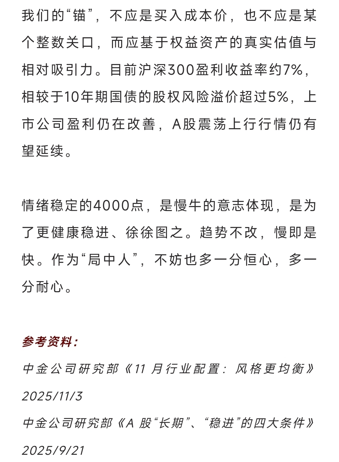 $上证指数(SH000001)$ 情绪稳定的4000点,是慢牛的意志体现