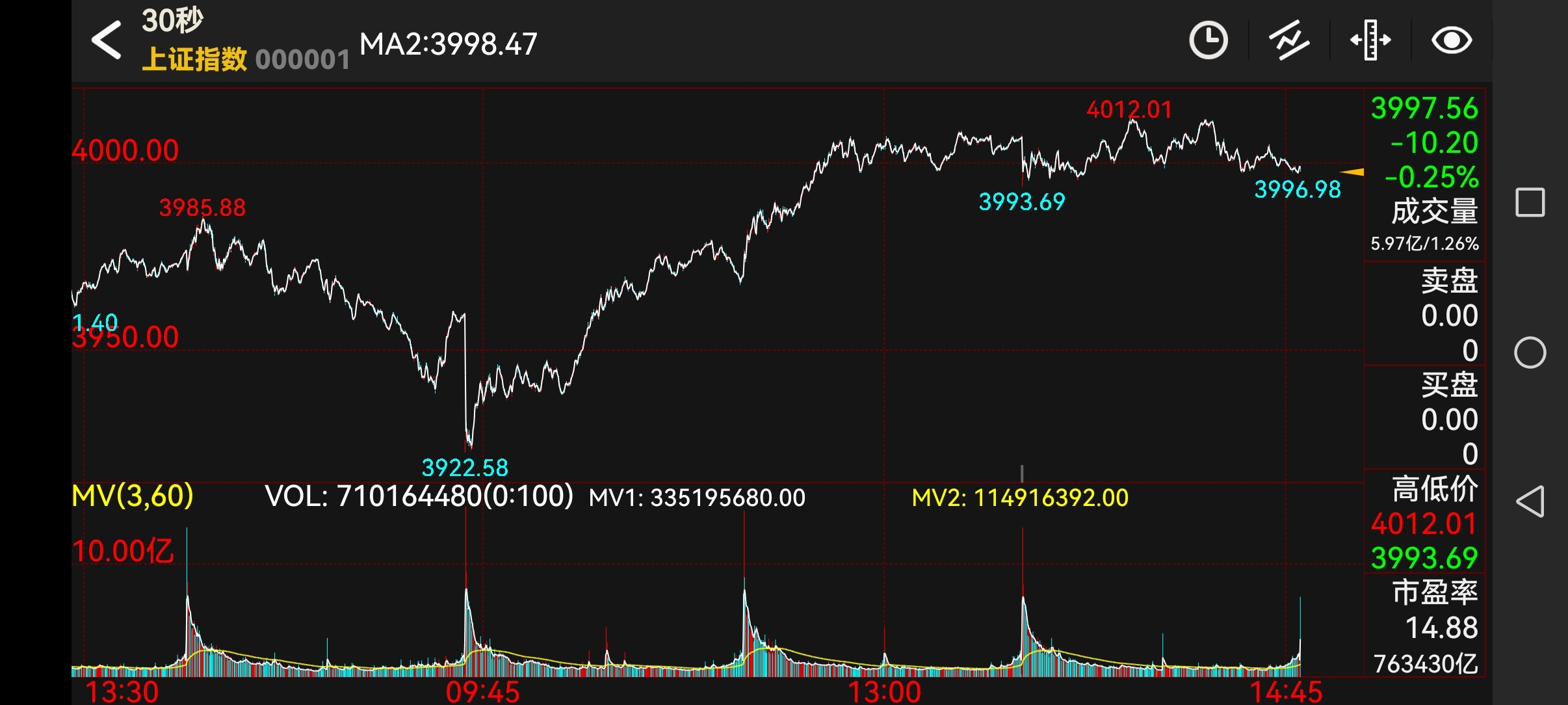 沪指自3899.96点后运行倒置平台形的三浪2走势,倒置平台形是335结构,目前