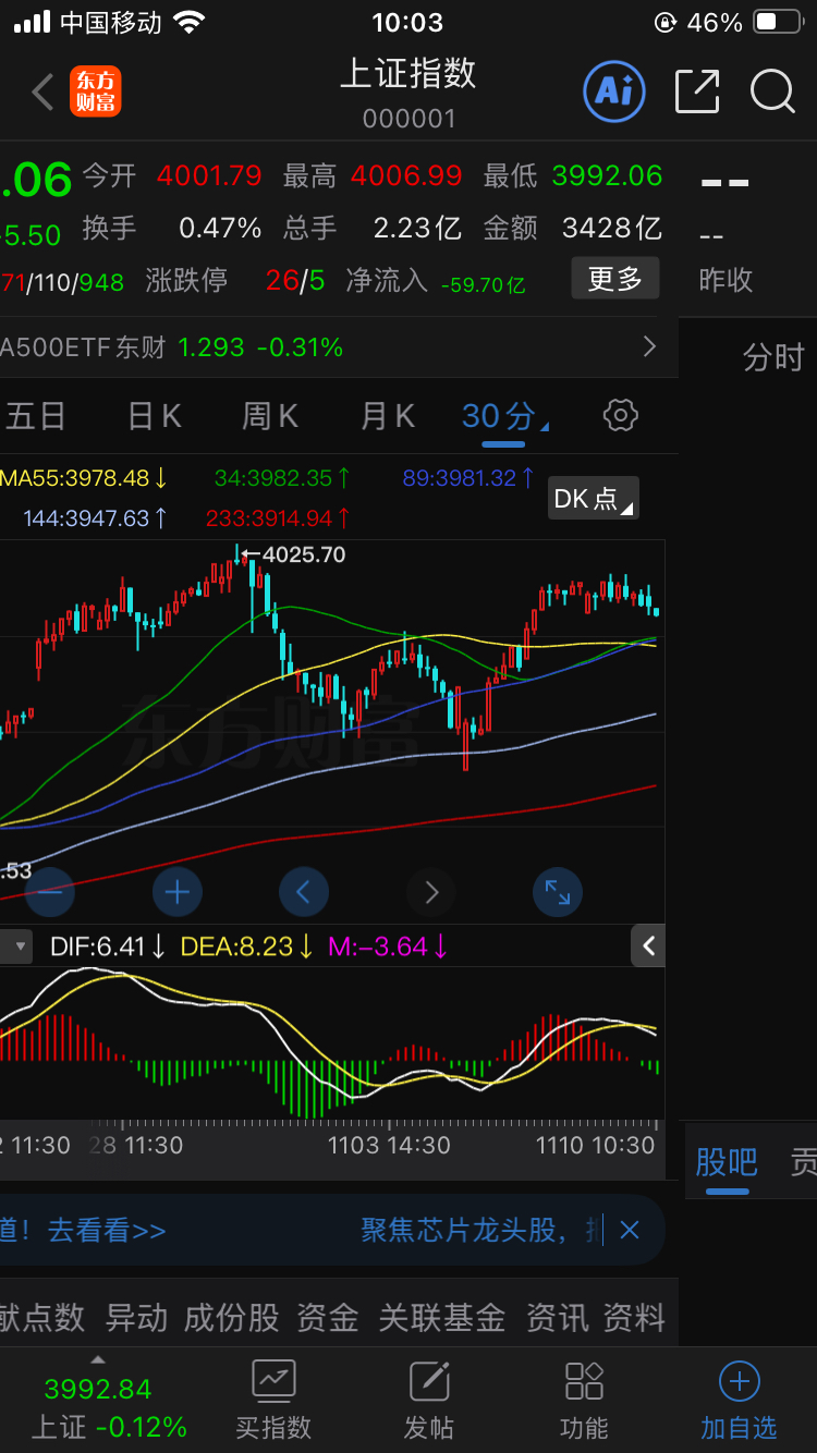 $上证指数(SH000001)$ 包含十一黄金周的CPI数据被市场解读为“不及预期”,目前先看30分钟级别调整(在日线及120分钟级别,指数都还显著悬浮在均线系统上方)。