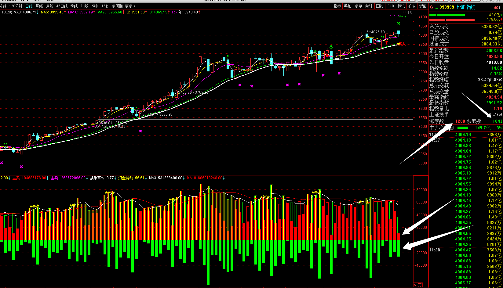 实盘跟踪:目前上证最低:3991.52昨天最低:3990.84