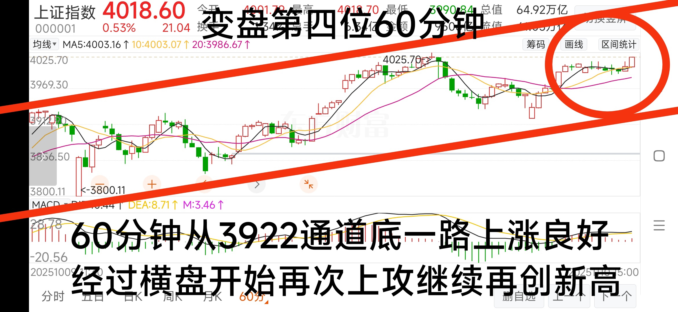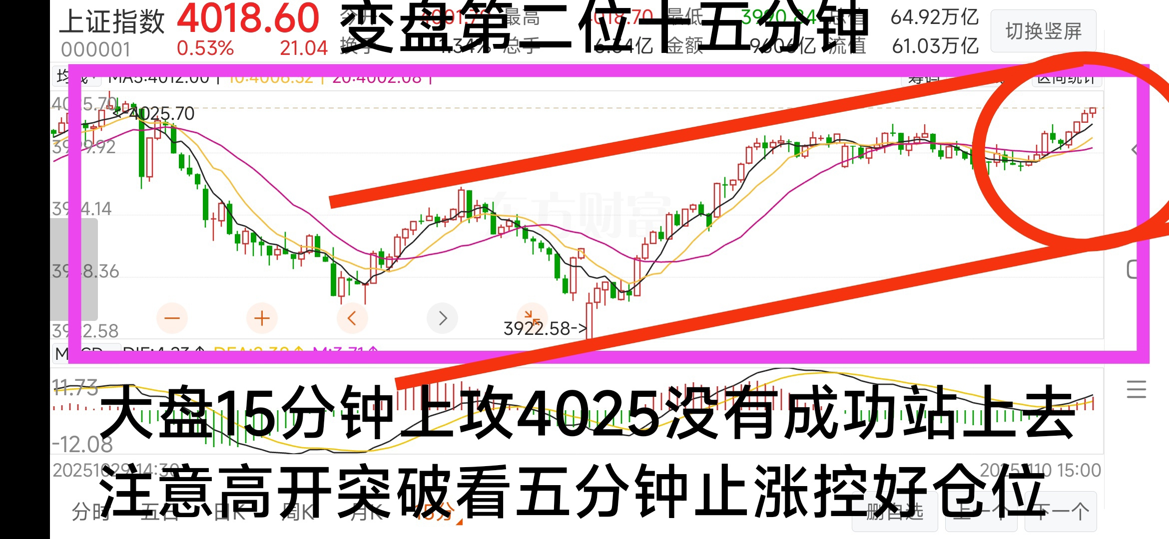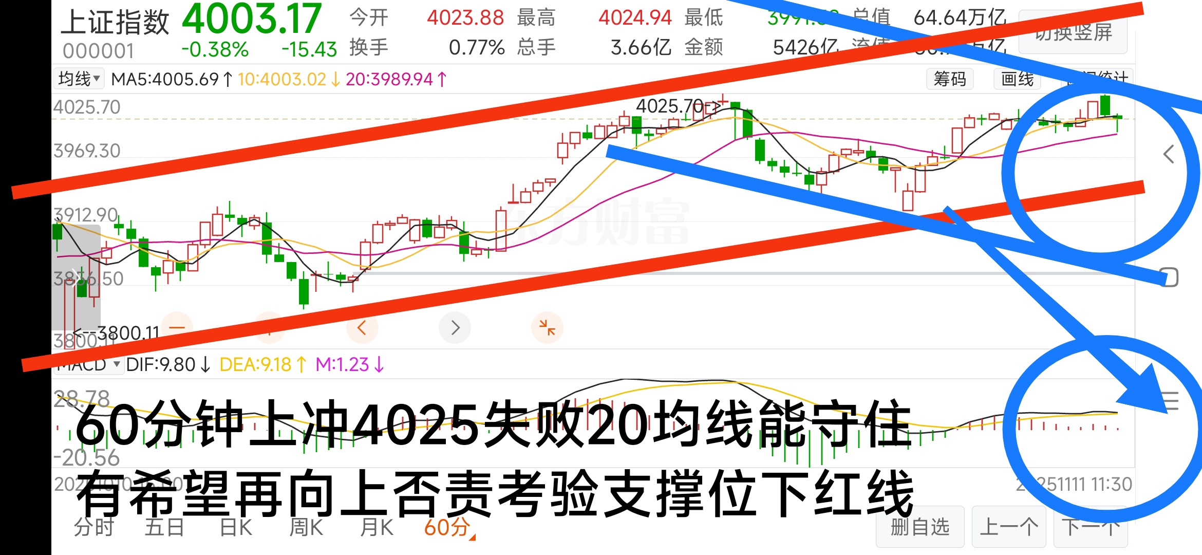 上冲4025宣告失败,希望60分钟20均线能稳住。如果守不住考验下红线强支撑。