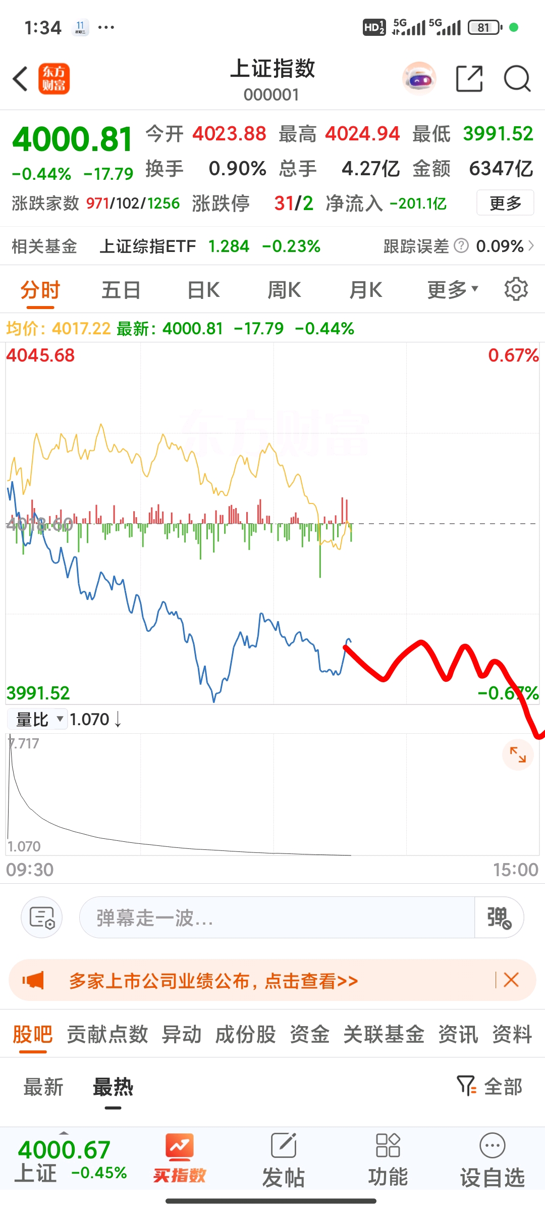 $上证指数(SH000001)$ 破4000点往下调整开始了