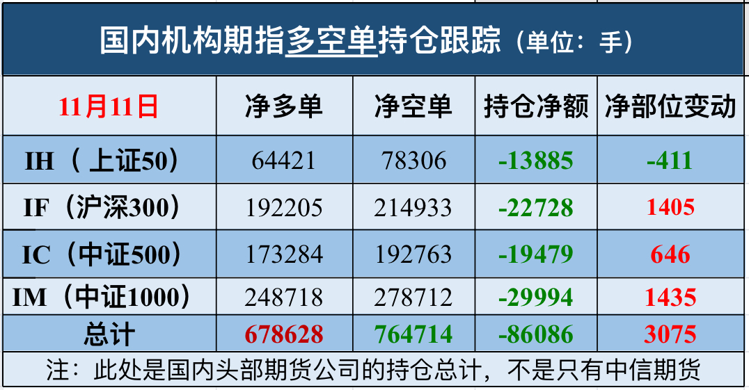 2、 今日(11月11日)机构大户期指数据: