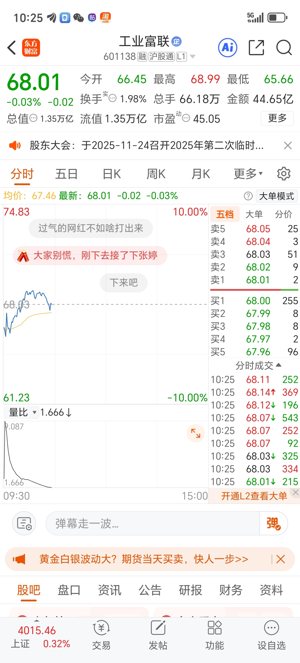 $上证指数(SH000001)$ $工业富联(SH601138)$ 工业富联现价67.57可全仓进,,#A股重心继续抬升!4100点指日可待?#