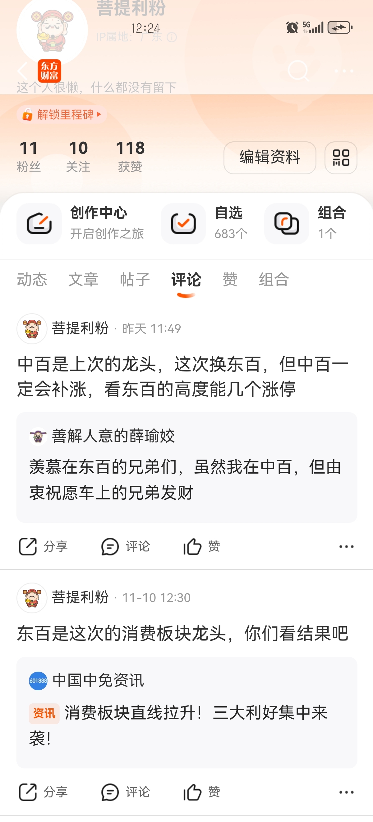 我说过:消费的总龙头就是东百,卖飞的后悔吗?好在涨停全部吃下,继续看涨…CPI转