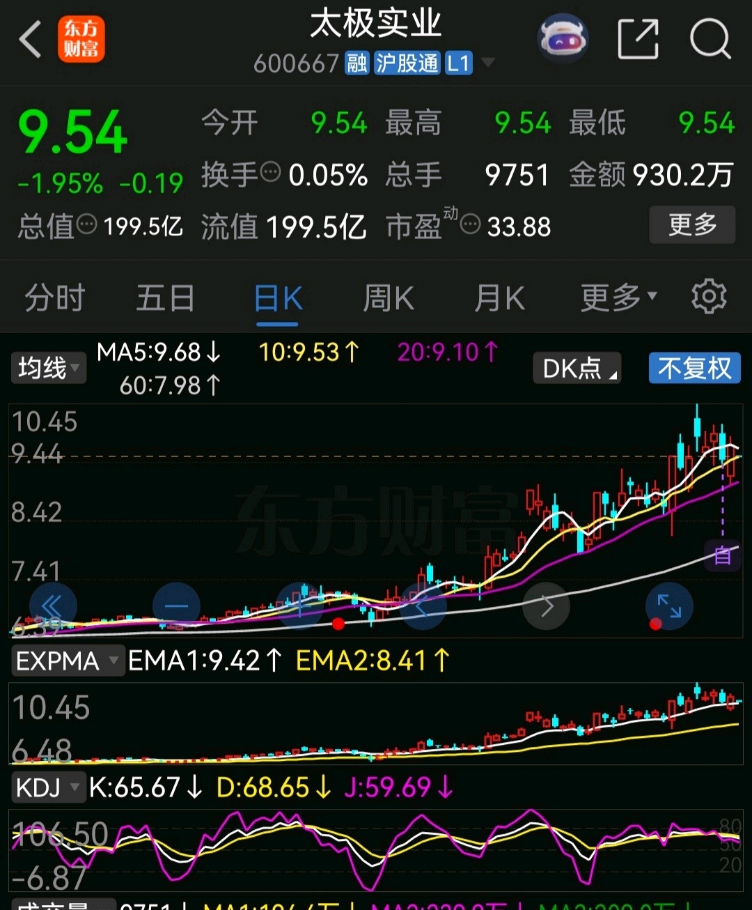 太极实业:逢9.45元左右或惯性以下低吸,有效站稳9.45元(年颈线位)会冲击11.15—11.85元高度(年最高平台)
