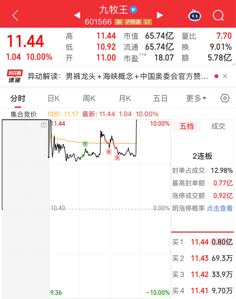 审核出来后就拉升涨停板了$九牧王(SH601566)$