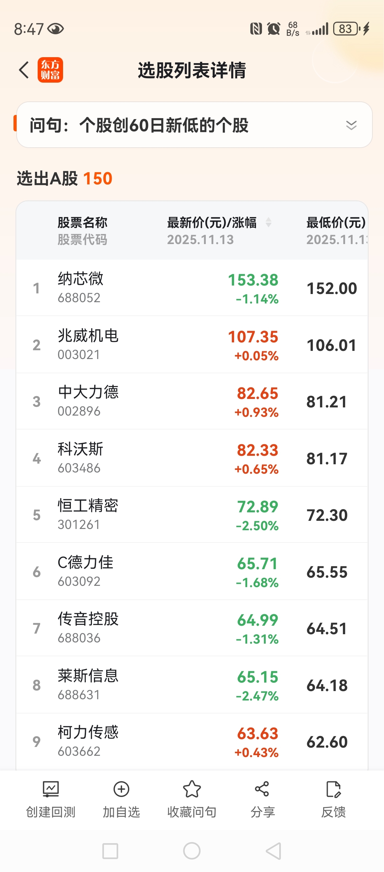 创出60日新低的个股有你的吗?
