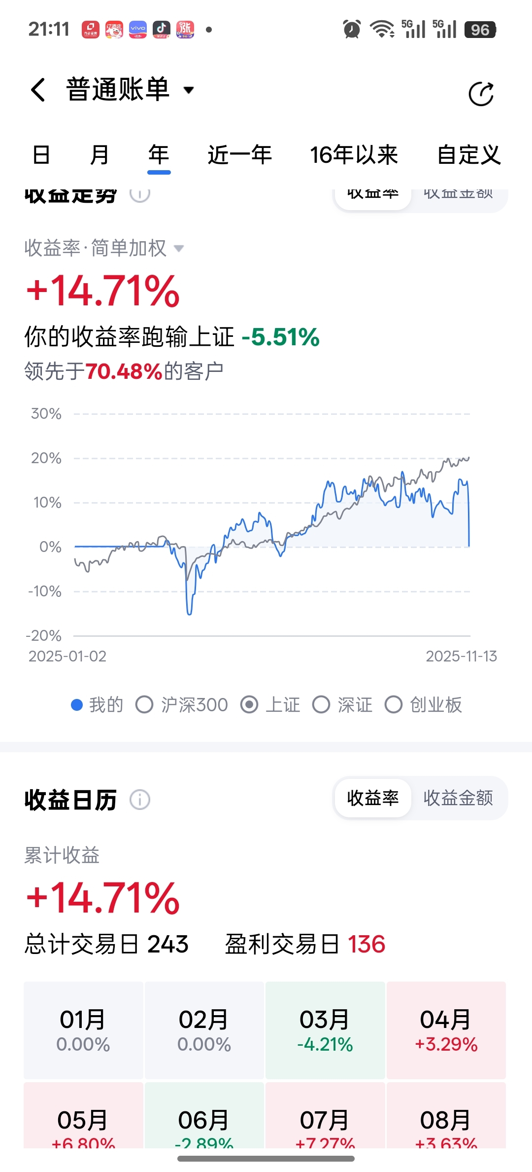 $上证指数(SH000001)$ 竟然能跑赢70%的人