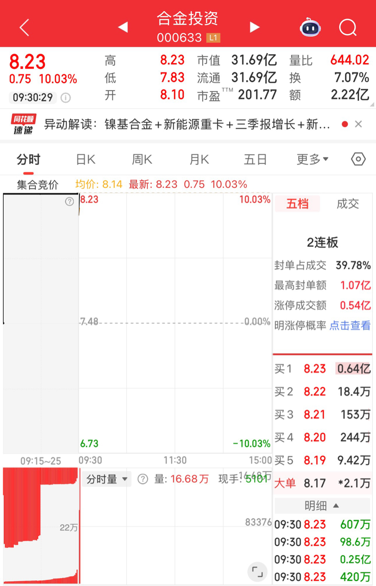 合富再涨停 ,估计要停牌了,当然它停牌一些低位的估计会连续一字