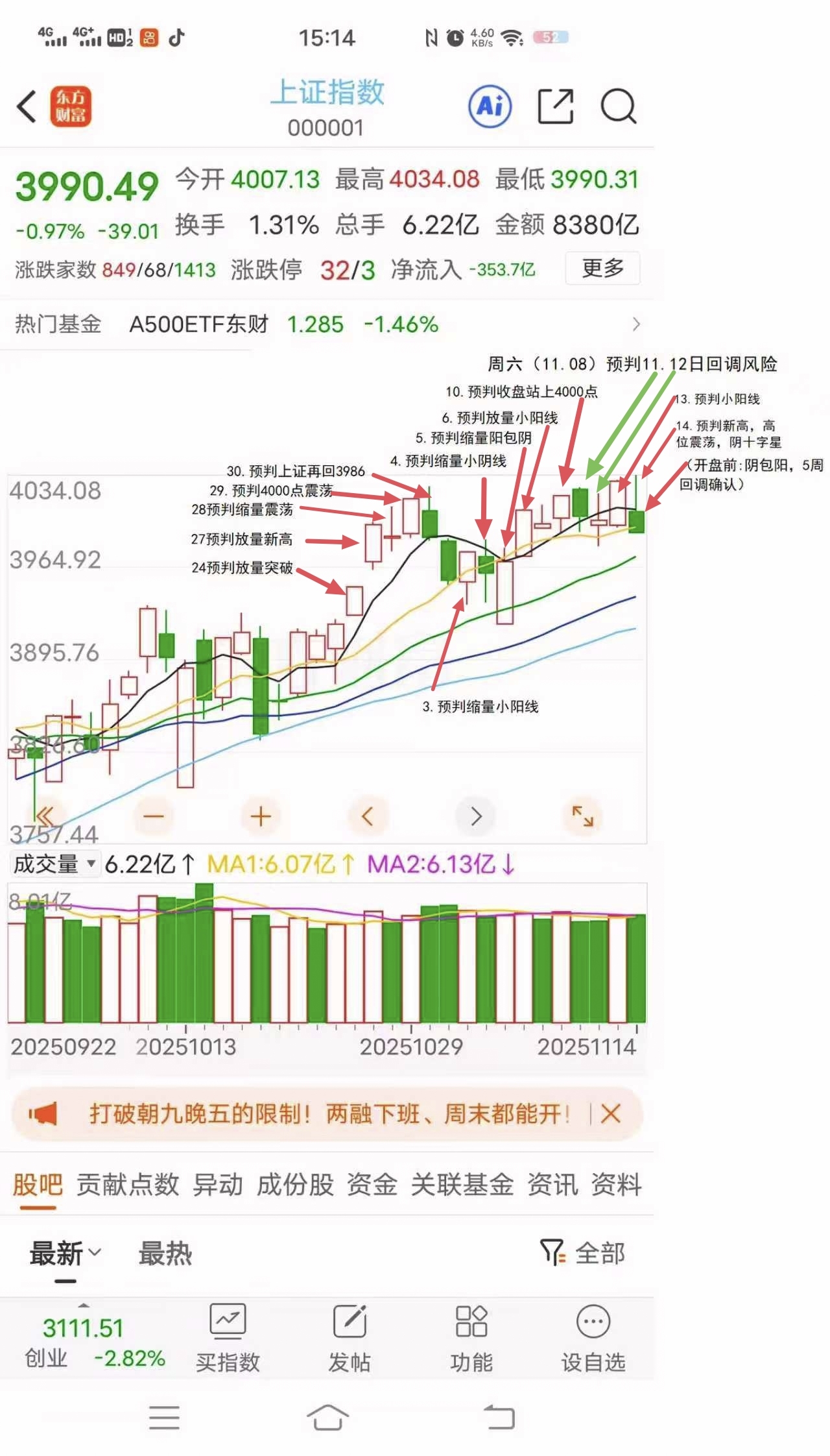 2025.11.17周一(0113)看调整,多看少动,收3980下方!
