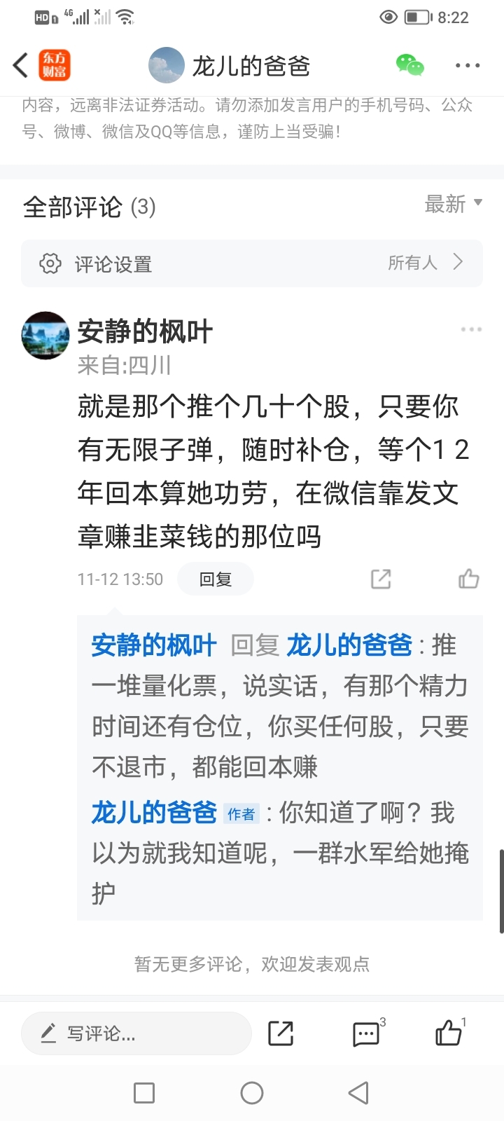 温馨提示: 1.根据《证券法》规定,禁止编造、传播虚假信息或者误导性信息,扰乱证券市场;2.用户在本社区发表的所有资料、言论等仅代表个人观点,与本网站立场无关,不对您构成任何投资建议。用户应基于自己的独立判断,自行决定证券投资并承担相应风险。《东方财富社区管理规定》
