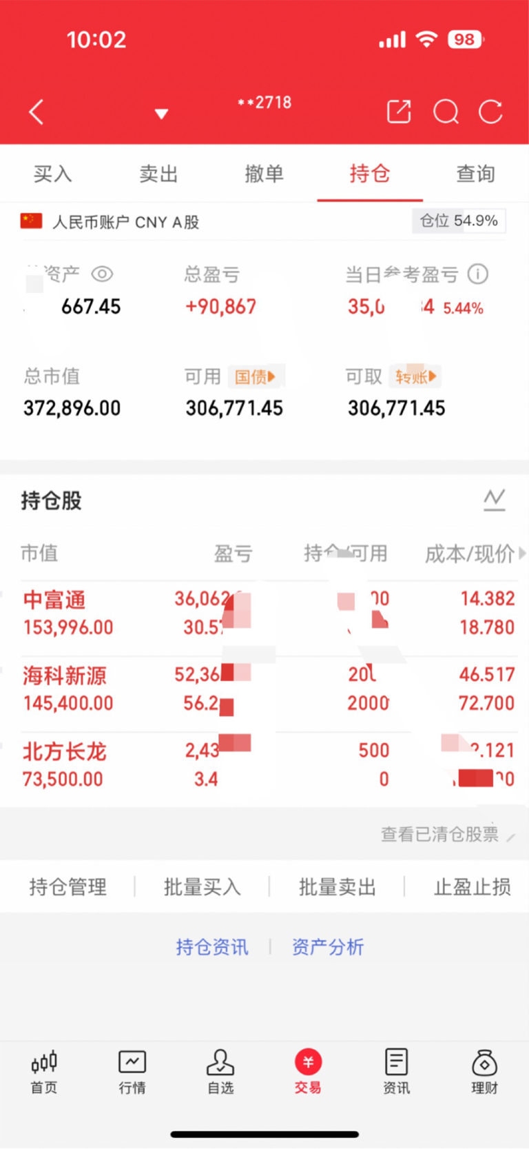 【第5天实盘记录|60W翻三倍挑战】今作回顾:继续持有:中富通海科新源注:本