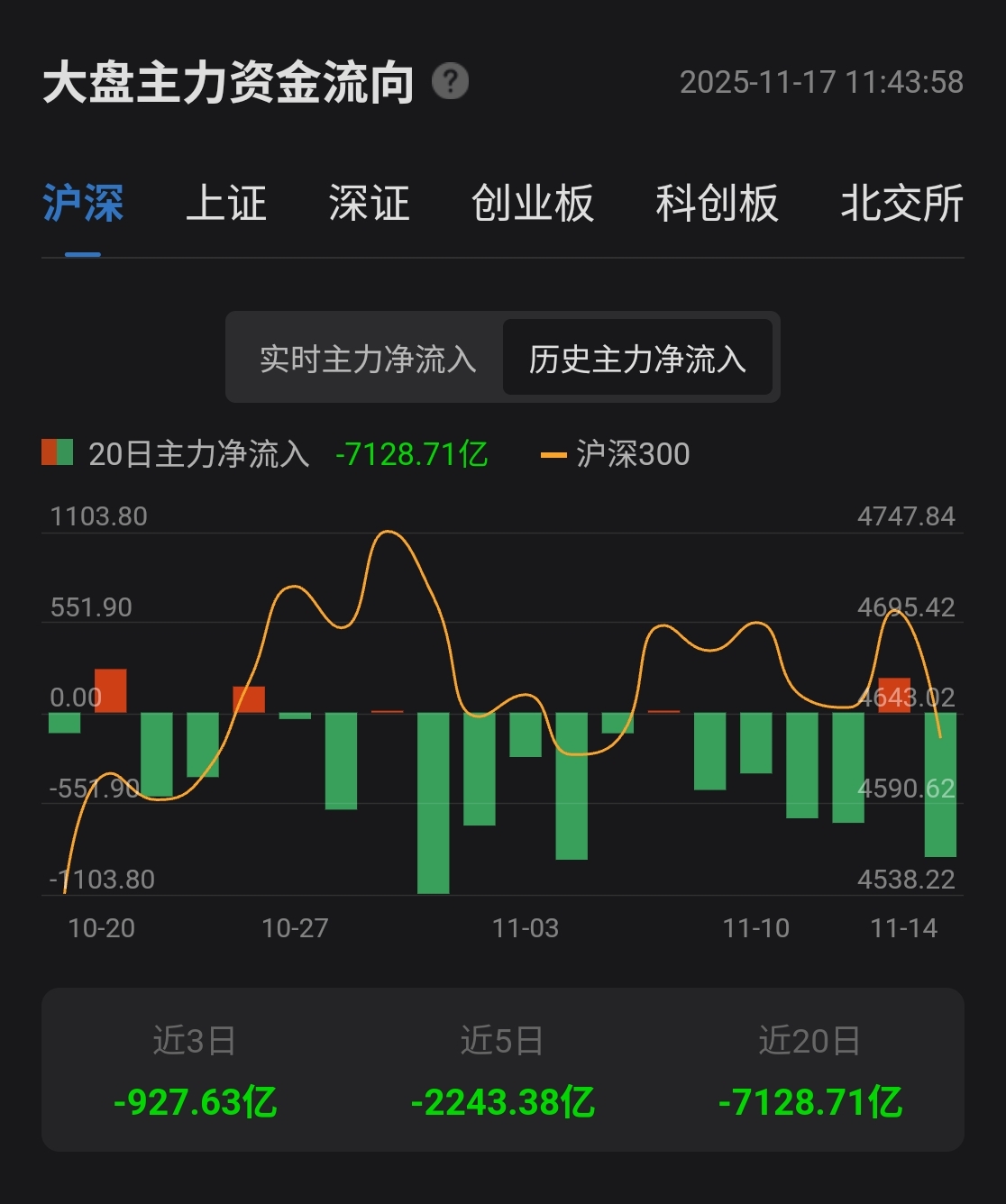 $上证指数(SH000001)$ 有好转,上个月流出的资金很多,最近有些放缓了,好兆头!