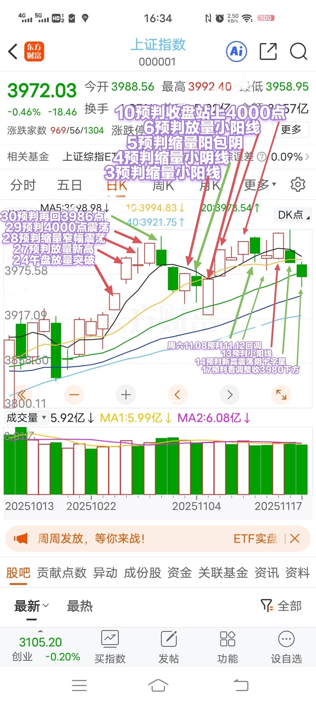 2025.11.18周二(0114)弱反弹,探底回升收3980上方!