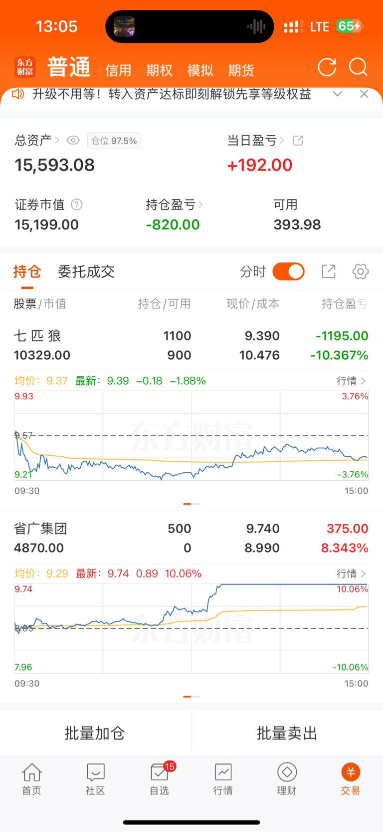 $上证指数(SH000001)$ 今日加仓1500实际资金15000,今日买入省广,七匹狼加仓200股