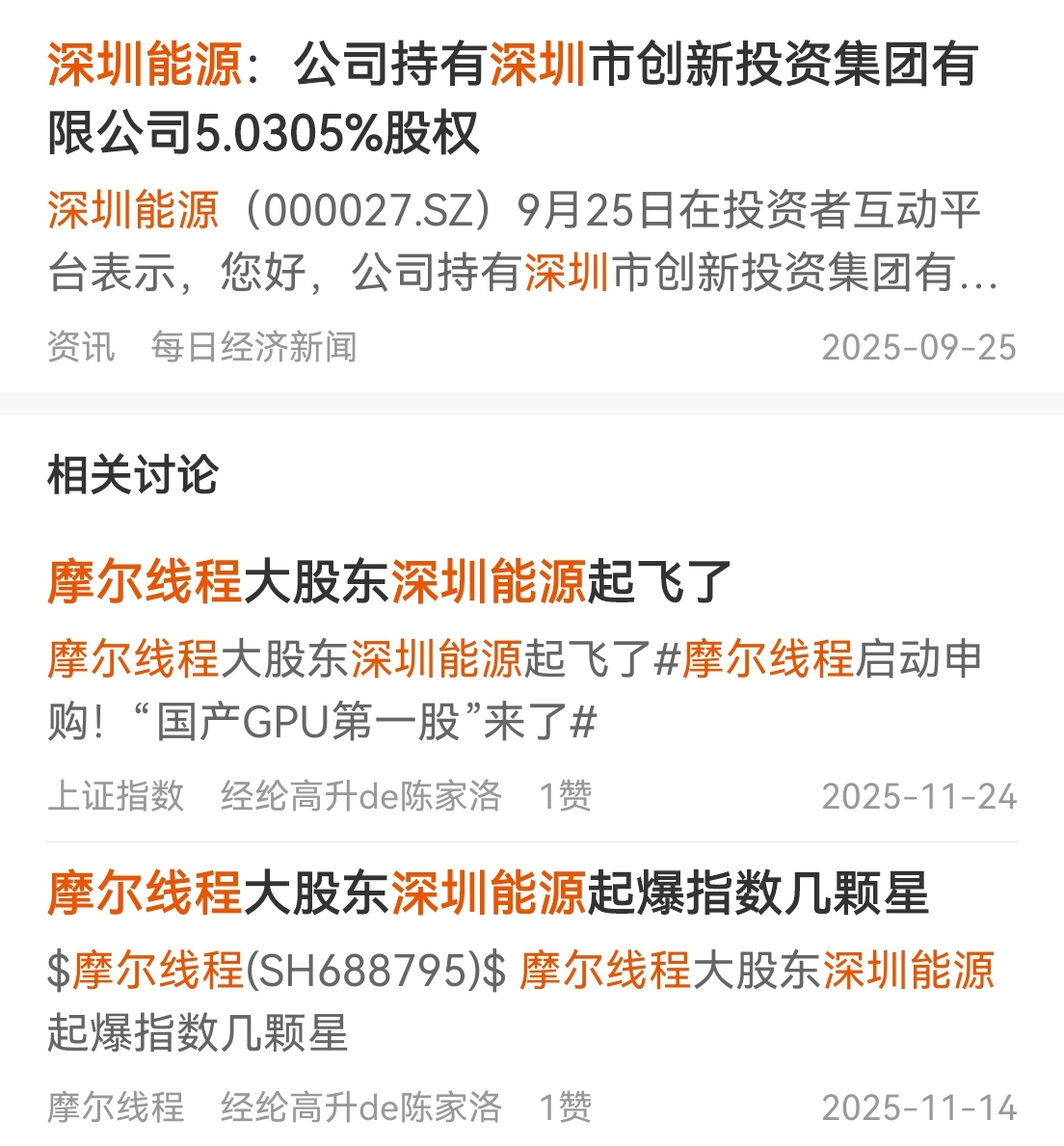 #摩尔线程启动申购!“国产GPU第一股”来了# 深圳能源持有摩尔线程是不争的事实