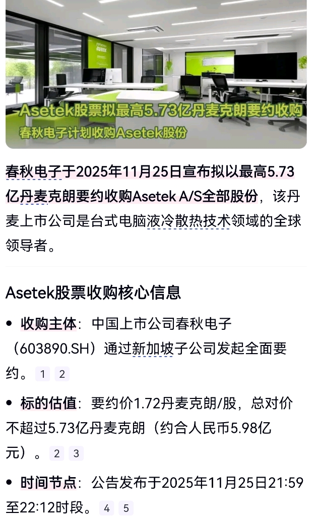 液冷又来了一个劲敌,春秋电子收购龙头液冷公司Asetek