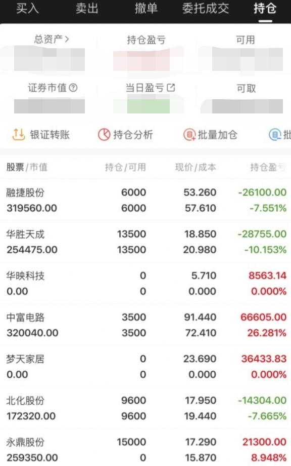 目前个人持有、融捷股份、华胜天成、中富电路、北化股份、永鼎股份、胜不骄败不馁,祝所有老铁收获满满。
