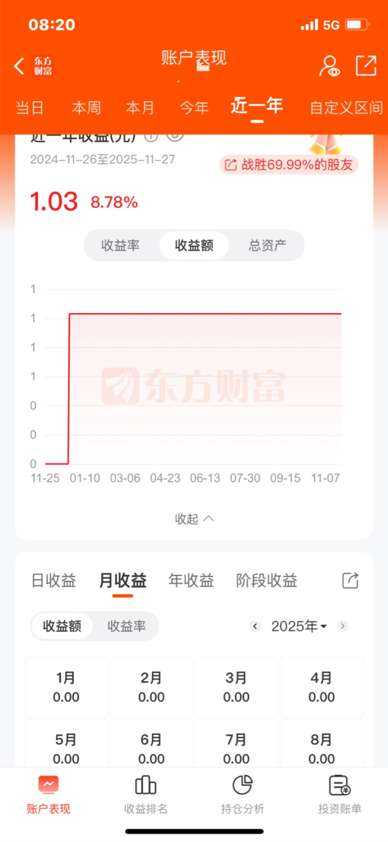 $上证指数(SH000001)$ 股市是一个缔造财富神话的地方,但不是每个人都能驾驭,在大A今年大家有没有赚钱呢?看看我的帐户就知道大概,去年11月份左右全部清仓,至今没有操作过,居然战胜了近70%的股友,也就是说有近70%的股民是亏损的,至于亏多亏少自己心里清楚