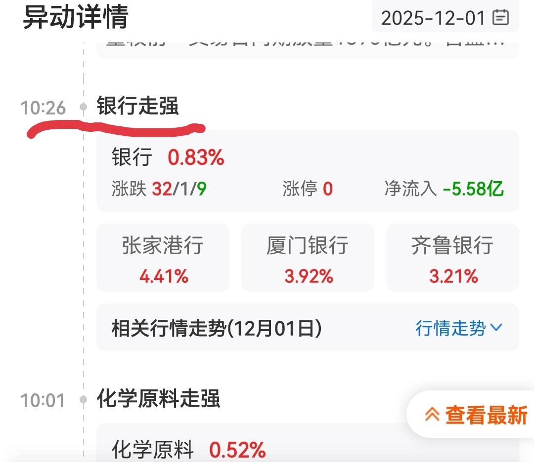 今天我想的是证券带动其他板块上冲直接补了上方缺口银行是不能出手的,在十点钟的时候我觉得不对劲就抛了证券,十点26分银行异动