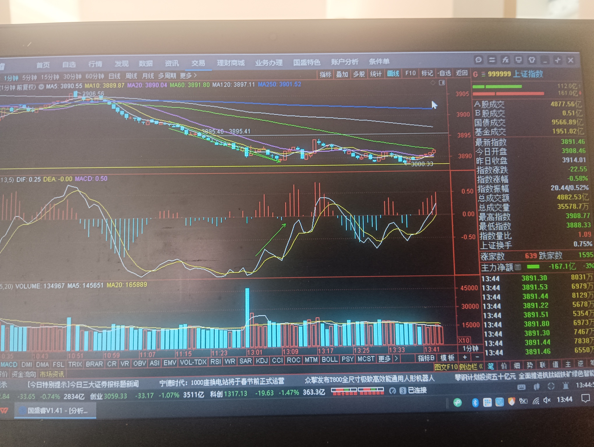 三哥说上篇说上证走出1分钟背趋、那现在是站在其M60线上准备上行啦