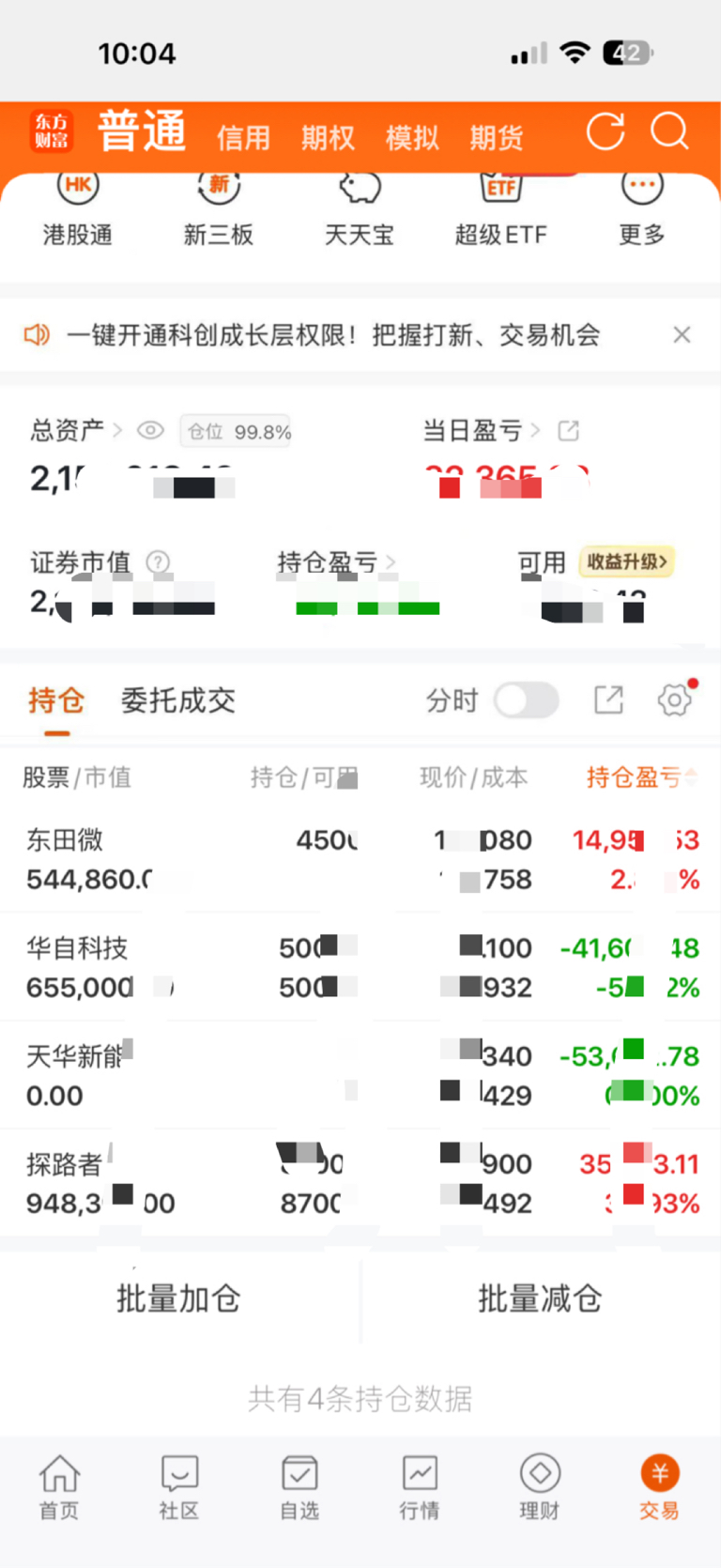 第105天实盘记录|今作:•买入:东田微•卖出:天华新能•持仓:探路者、华自科技