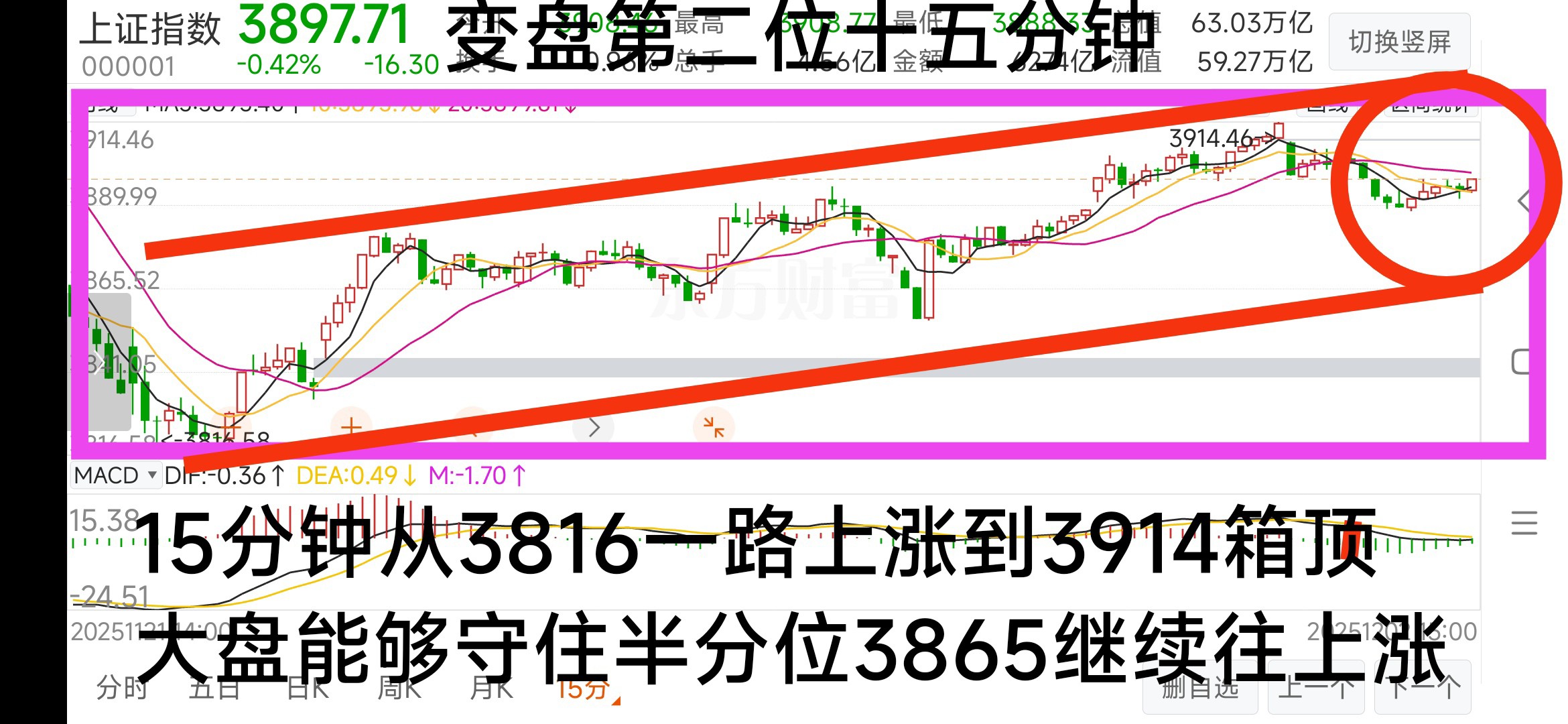 突破压力兰线逢低买入,涨到3914看五分钟变化如果再止涨卖出。