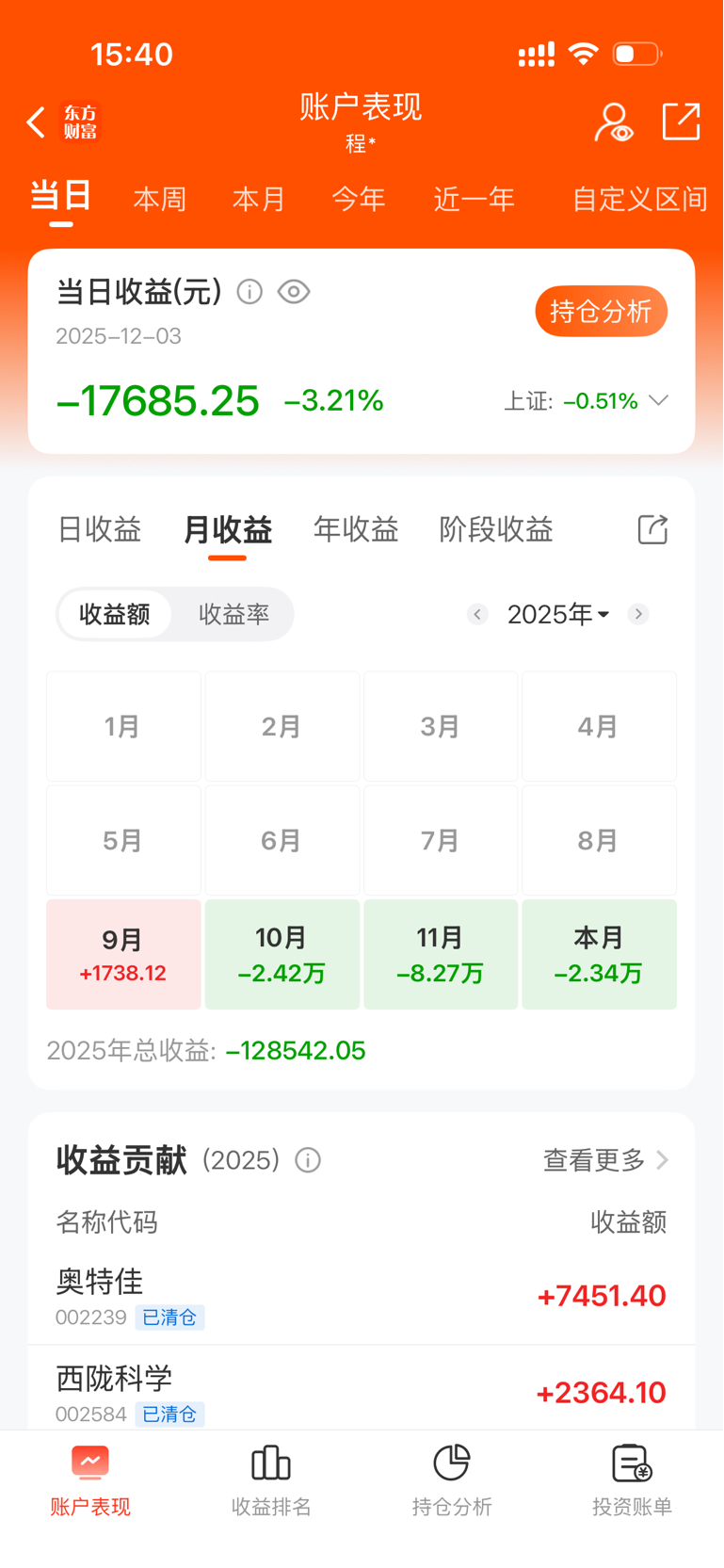 #收盘点评# 应该是牛转熊了,自选里面好几个,都破年线了。去年亏20个注销账号了,今年不知道是不是被驴踢了,居然相信大a有牛市。又回来给大a贡献了快20个。散户是赚不到钱的,