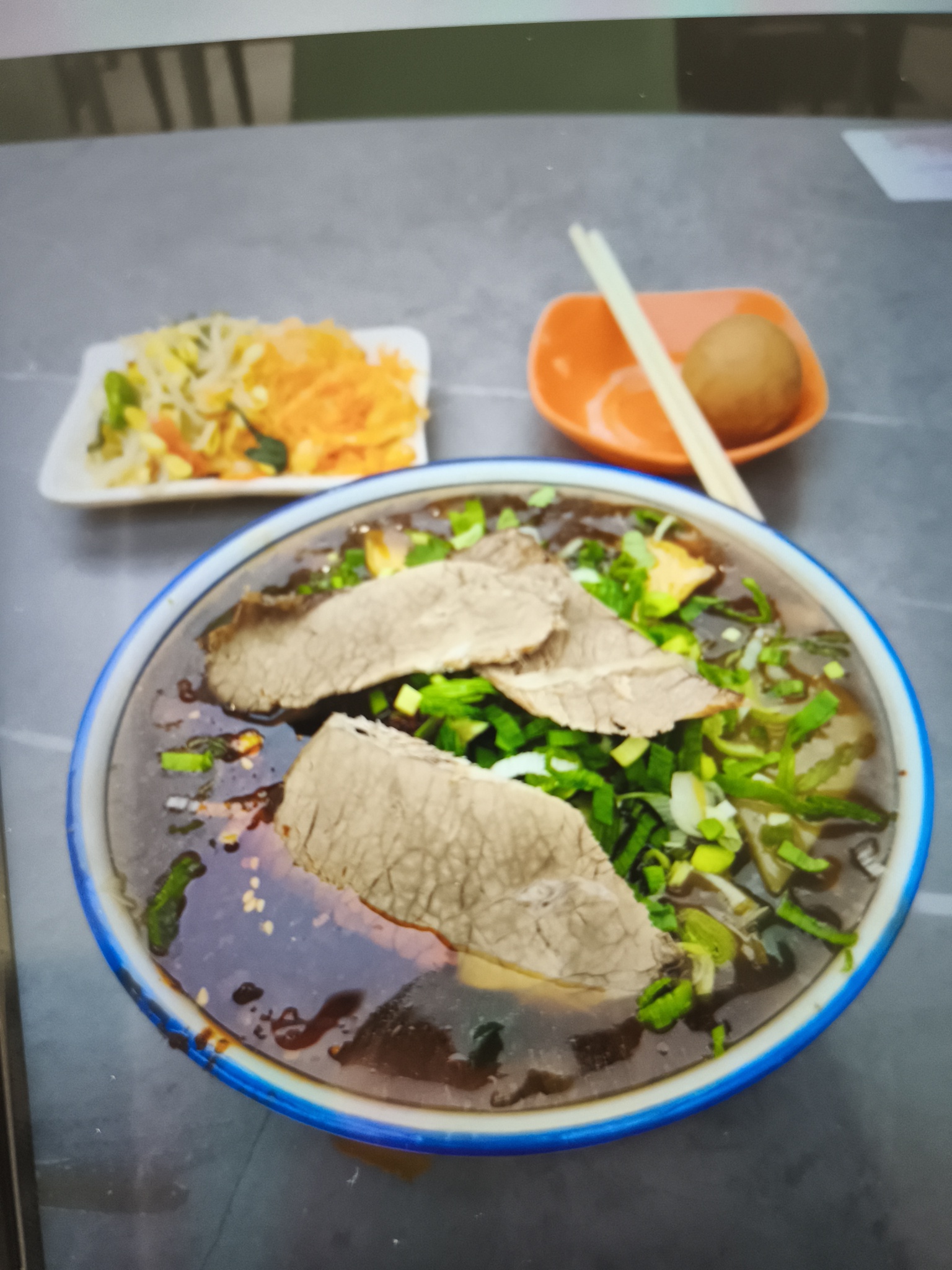 今天附近一家面馆搞活动,1块钱一碗牛肉面加蛋加菜,吃饱了,也算安慰吧。