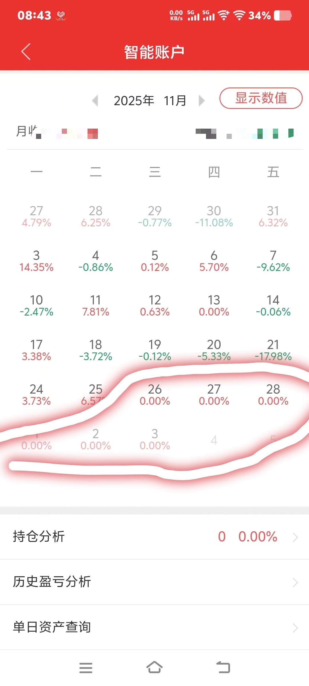 10月红5个点,11月红4个点。目前空仓第6天。继续努力!