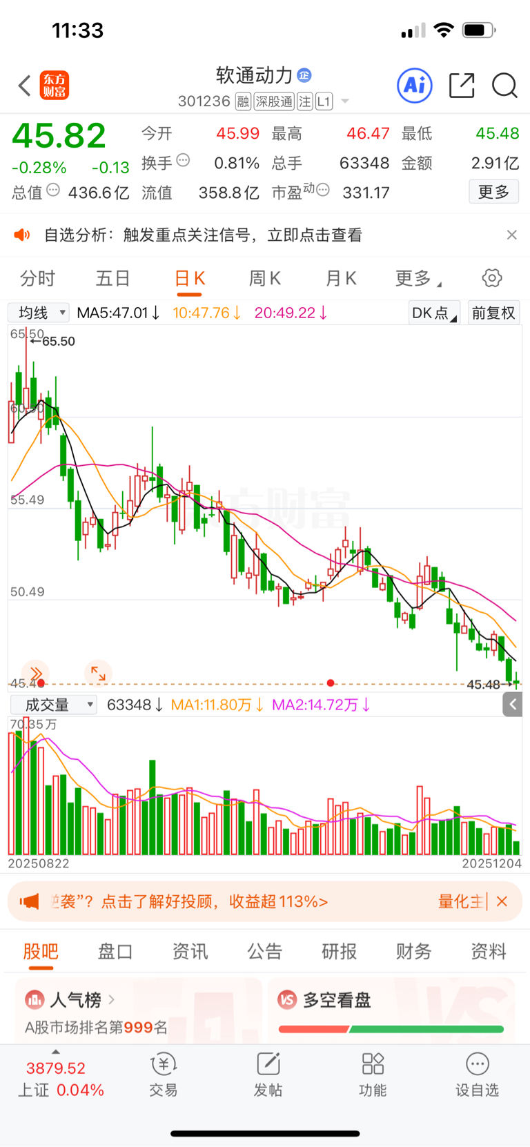 $上证指数(SH000001)$ 软通动力这么好的公司我相信他,抄底了