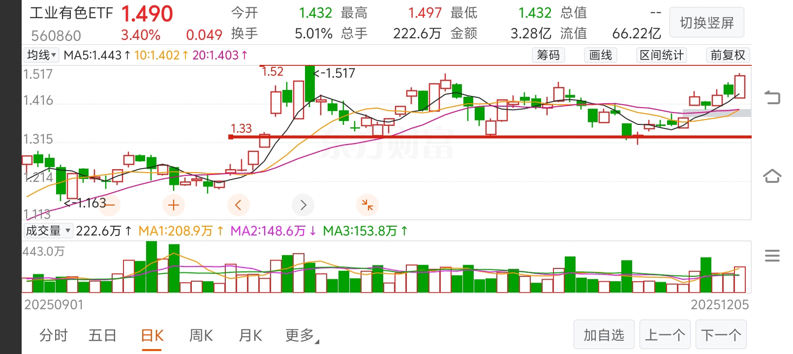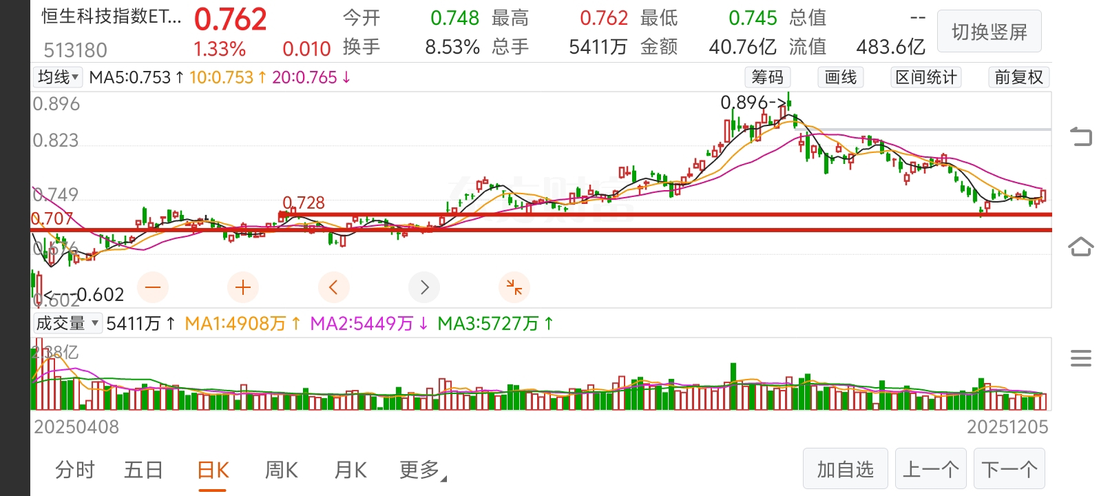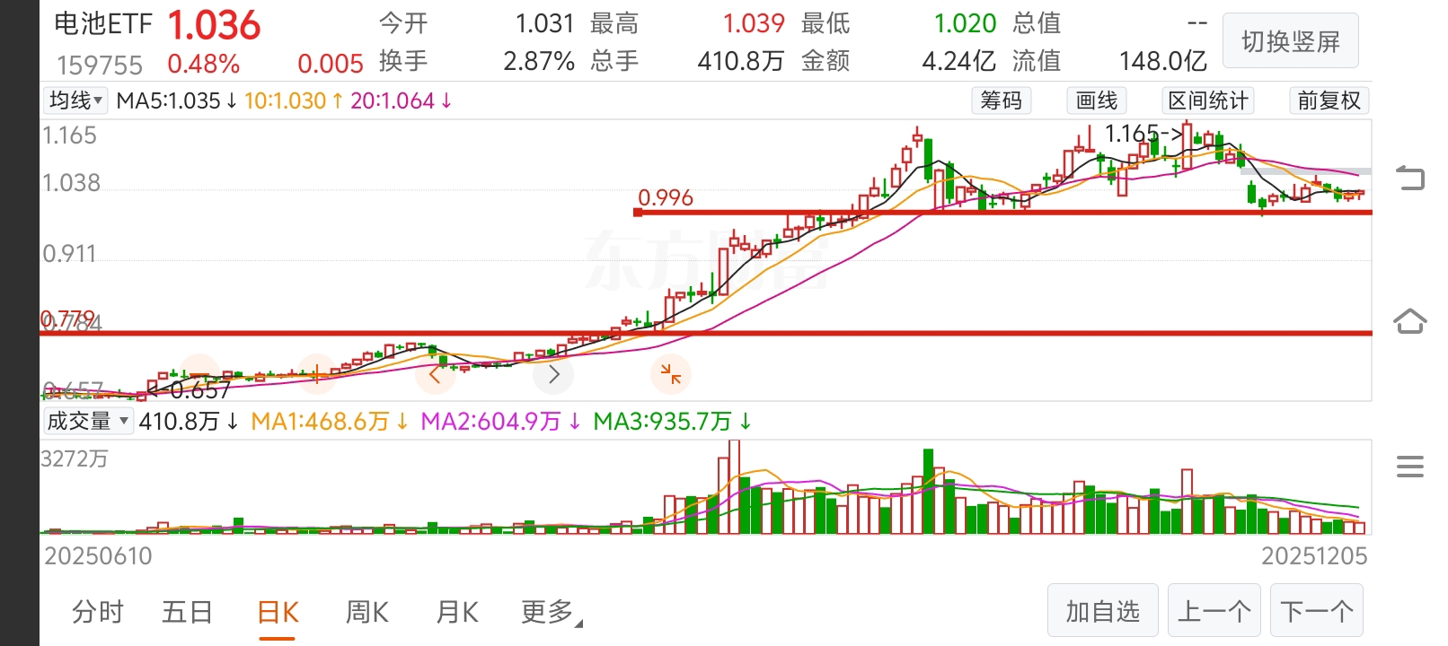 电池、光伏、有色ETF仓位均15%,恒生科技ETF仓位20%。共计65%仓位为宜。