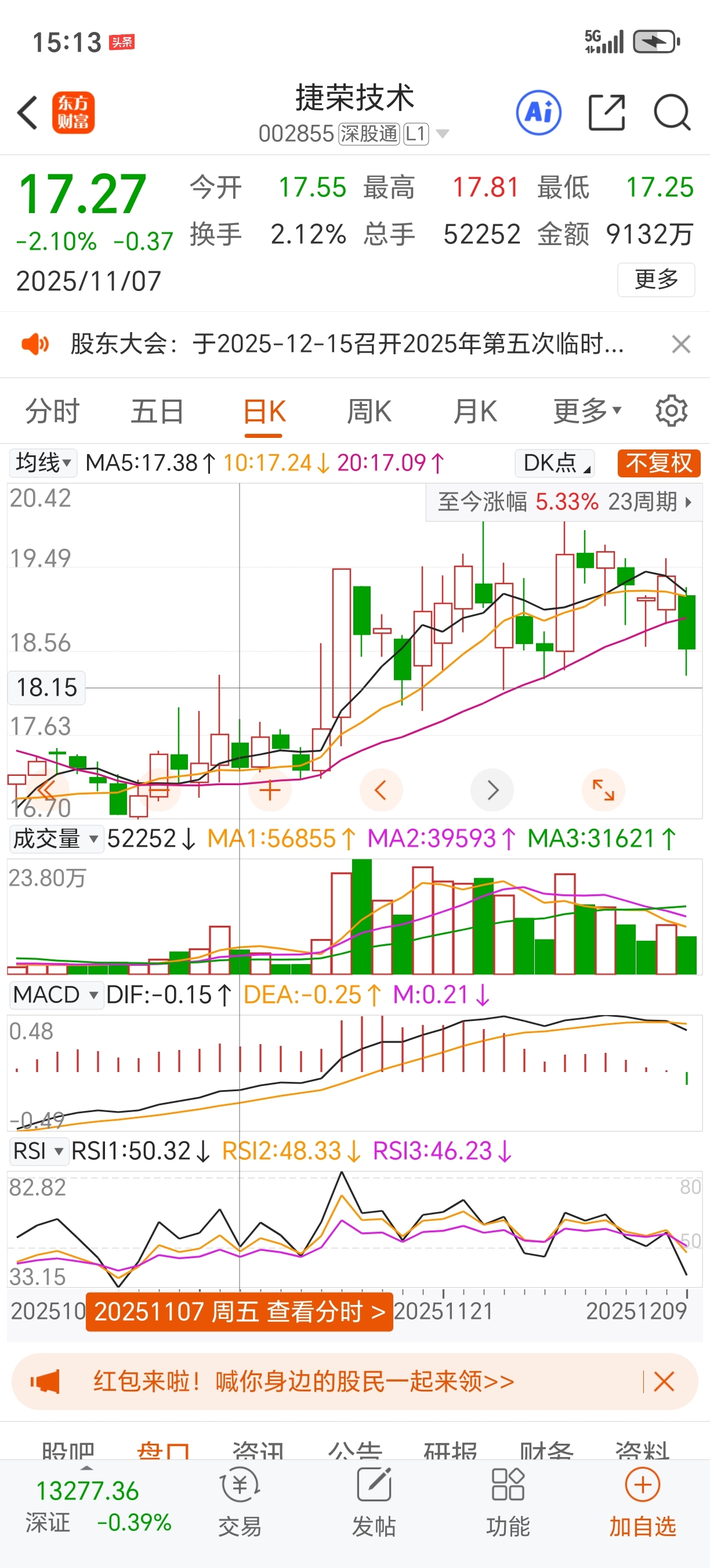 $上证指数(SH000001)$ $捷荣技术(SZ002855)$ 差不多应该是18.15附近,晚上直接挂好买单,尾盘集合竞价18.58买了九十万明天大阳线高点出掉,这样来回T。等了一天忍住没有动手尾盘重仓进来了,