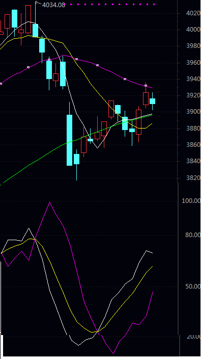 日线 阻力二 3933.04 阻力一 3920.41 均 价 3911.27 支撑一 3898.64 支撑二 3889.50