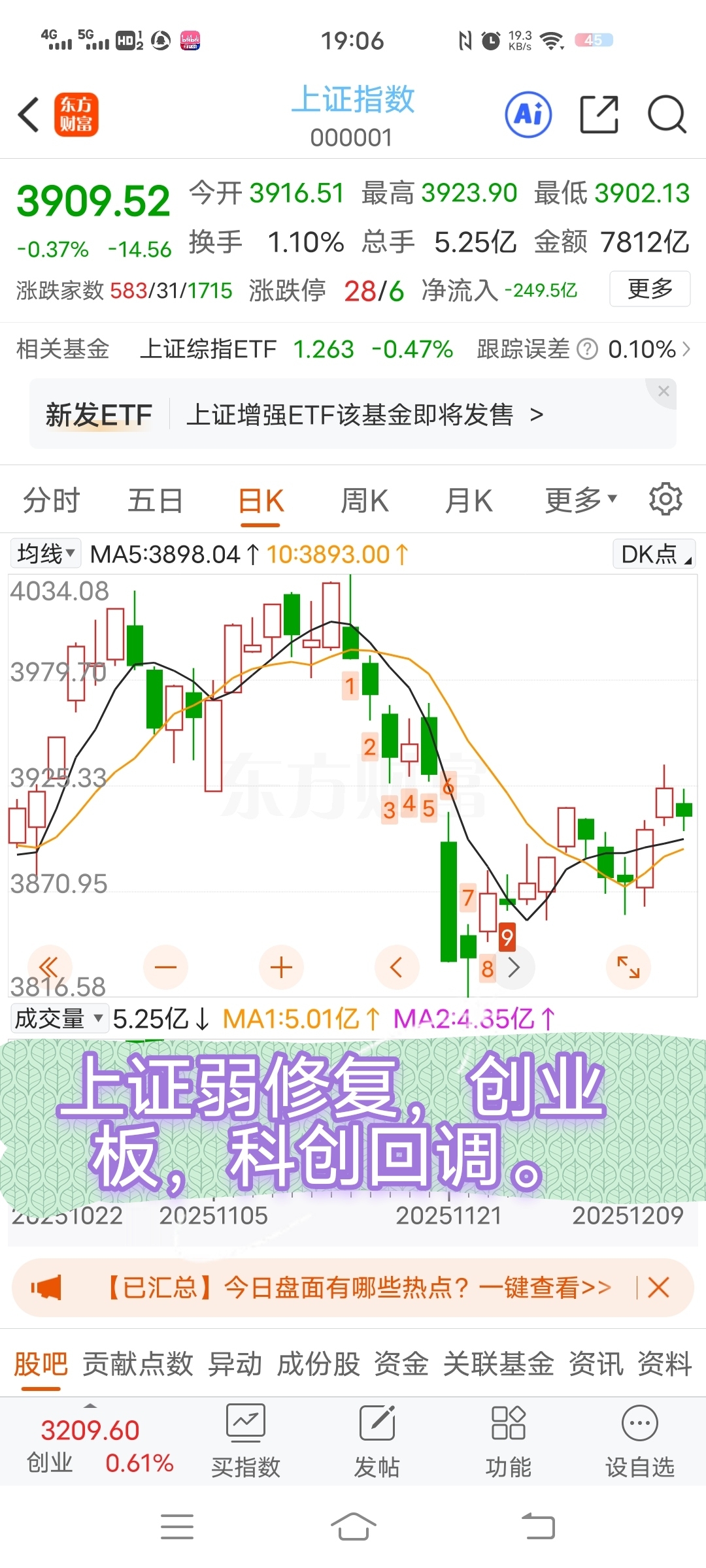 2025.12.10周三(0130)上证弱修复,创业板,科创板回调!(直觉科创要