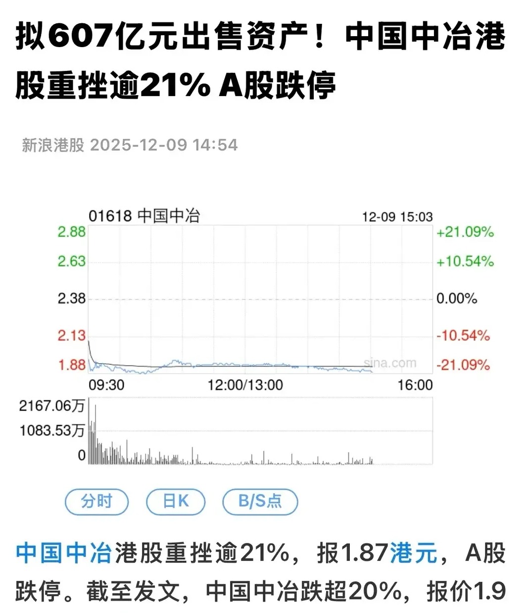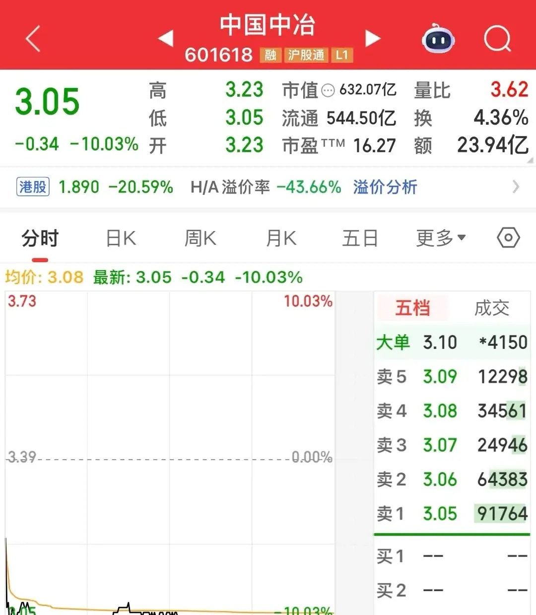 中国中冶早盘闪崩10%跌停,28万股东猝不及防。股价已在低位,竟还能跳空跌停,全天巨量成交也托不住沉重抛盘。市场一片愕然:究竟发生了什么?
