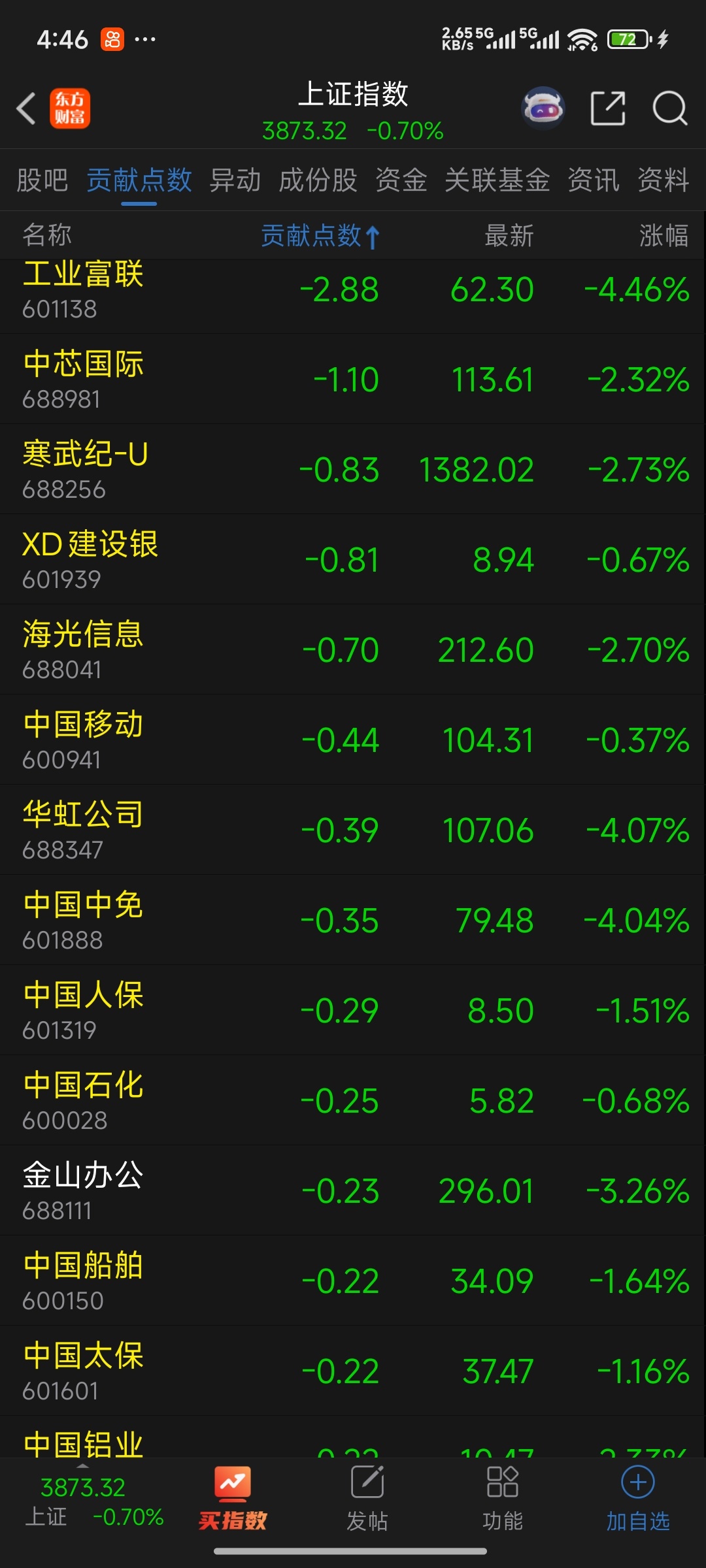 $上证指数(SH000001)$ $工业富联(SH601138)$ 接连几天,大盘都被富联拖垮的。