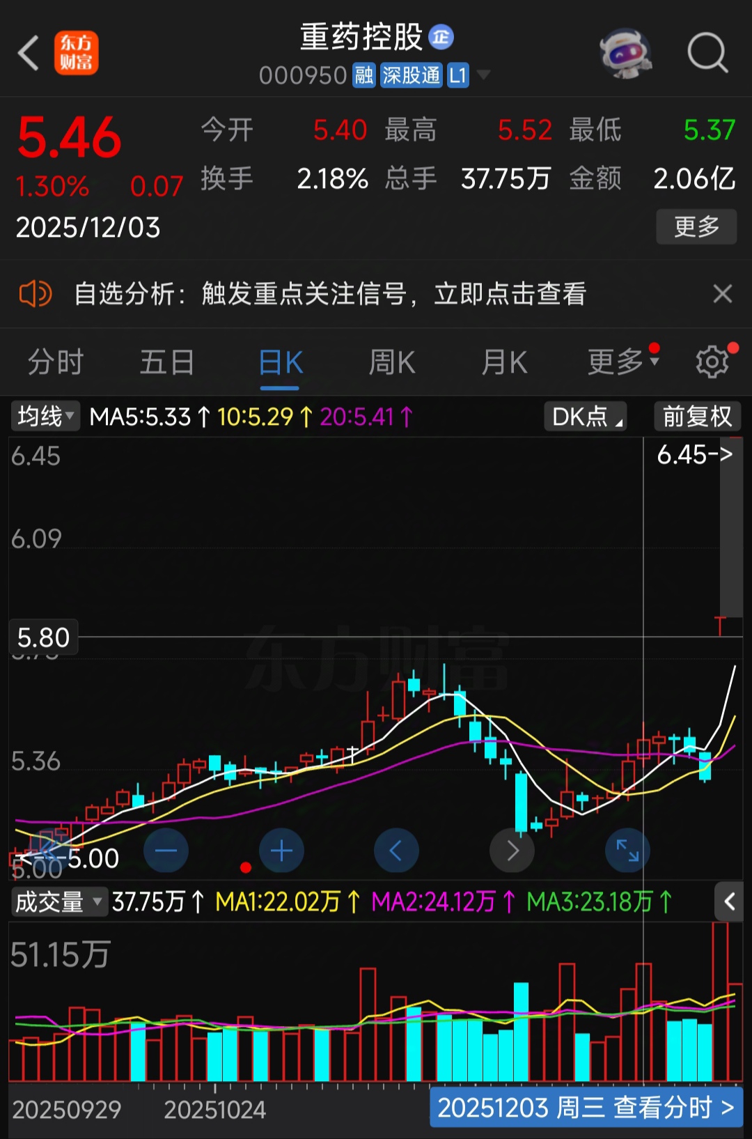 重药控股是我们12月3日重点讨论的一只股,今天迎来2连板,不错