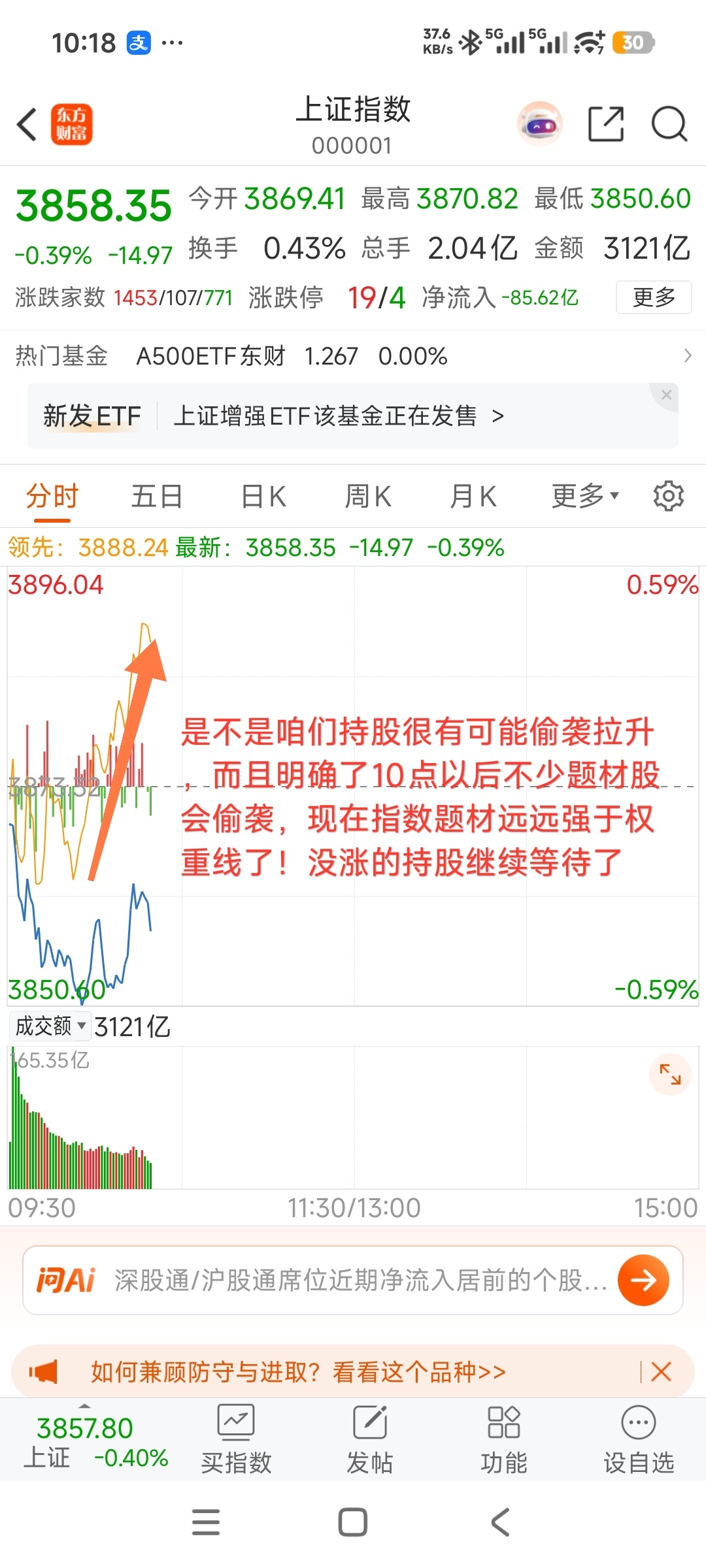 是不是咱们持股很有可能偷袭拉升,而且明确了10点以后不少题材股会偷袭,现在指数题材远远强于权重线了!没涨的持股继续等待了