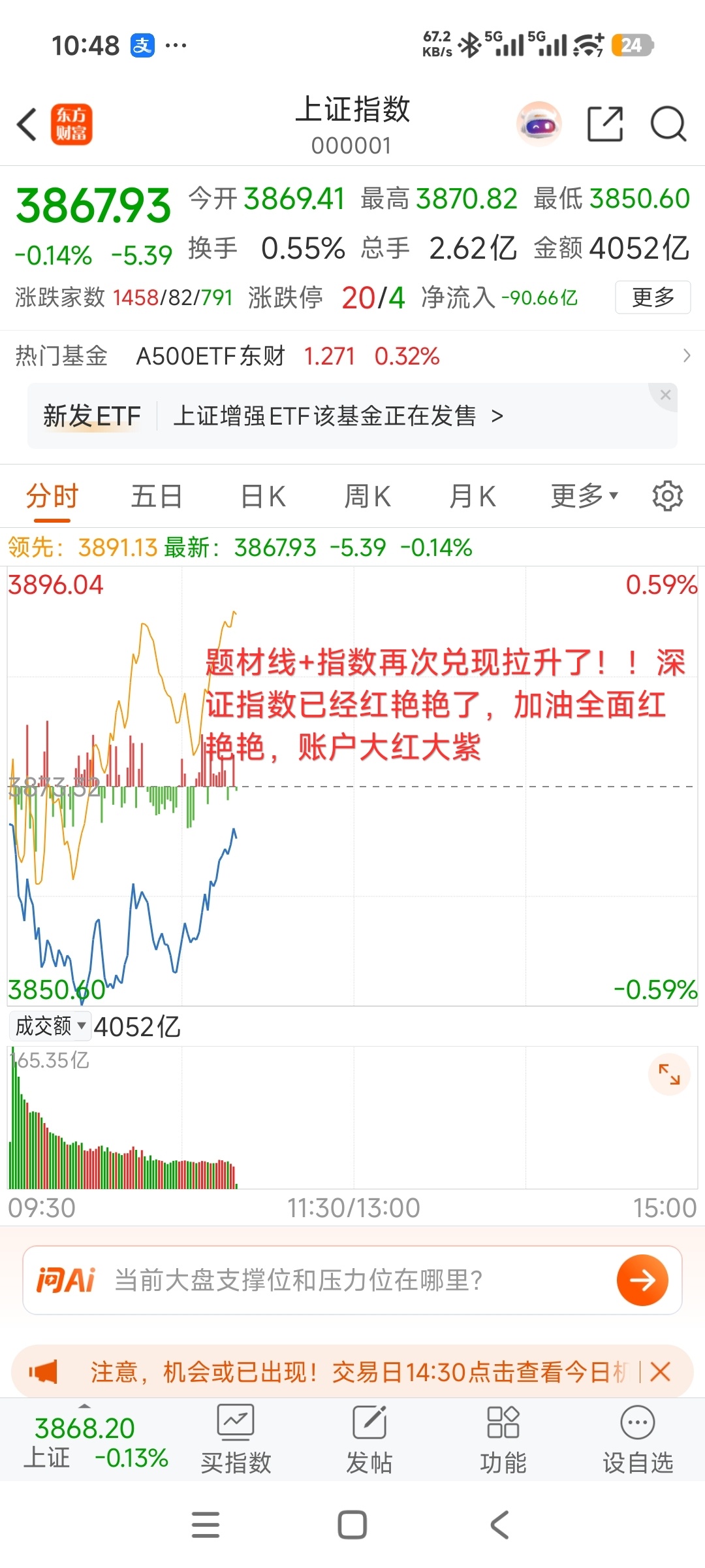 题材线 指数再次兑现拉升了!!深证指数已经红艳艳了,加油全面红艳艳,账户大红大紫