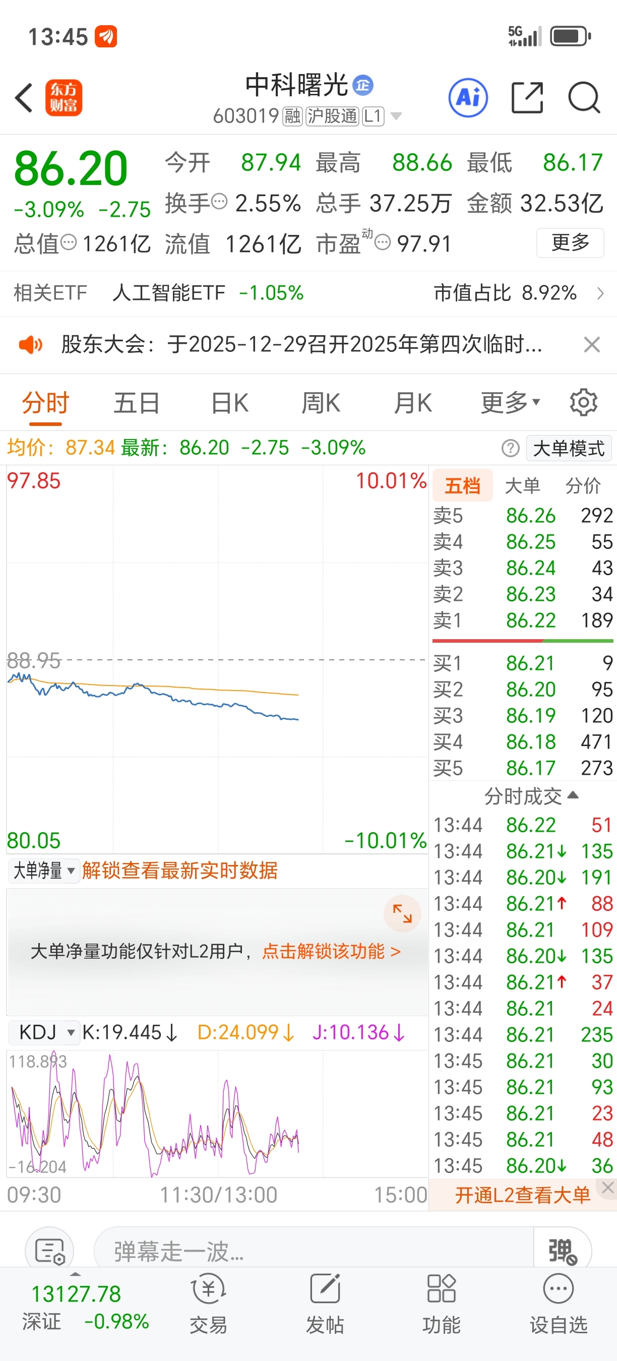 $上证指数(SH000001)$ $中科曙光(SH603019)$ 我说了短线这个位置全仓进9个点必赚我是做短线的相信我86.20再加三十万进来了