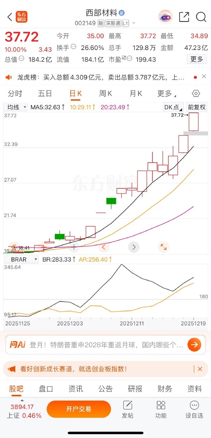 $上证指数(SH000001)$ 西部材料002149这波大涨,账户从“糊口级”干到“躺平级”,K线斜率比火箭发射还陡!