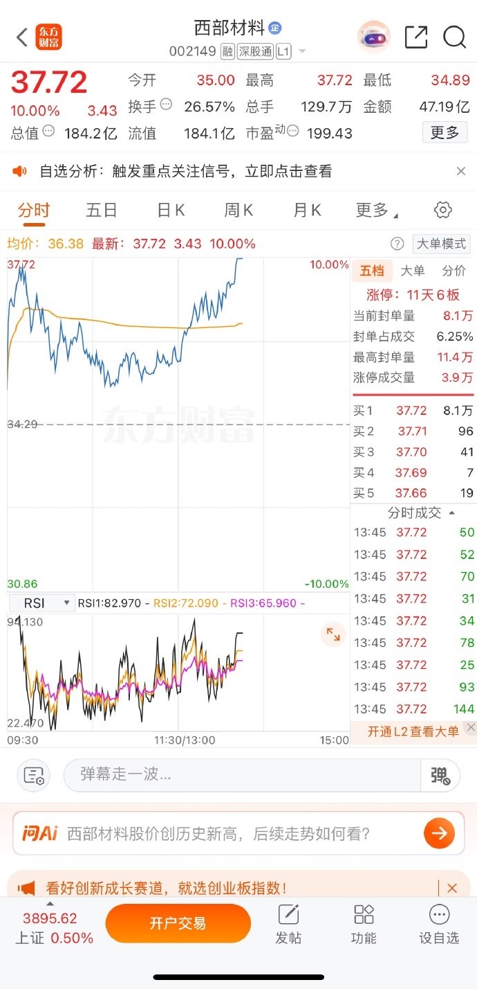 西部材料002149这波大涨,账户从“糊口级”干到“躺平级”,K线斜率比火箭发射