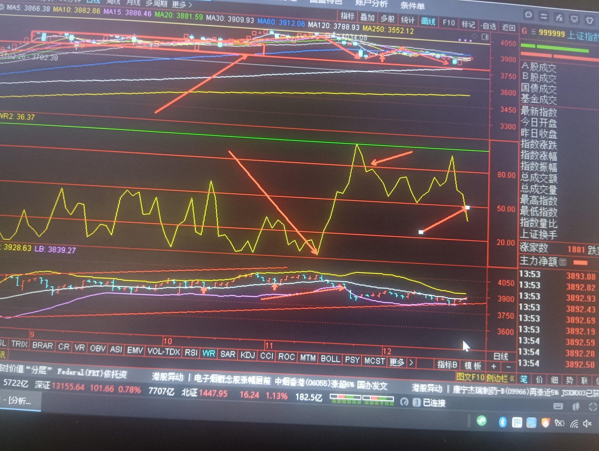 上证日K、wR处50线之下对标股价趋强势、反之50线之上转弱、布林股价站上中轨股