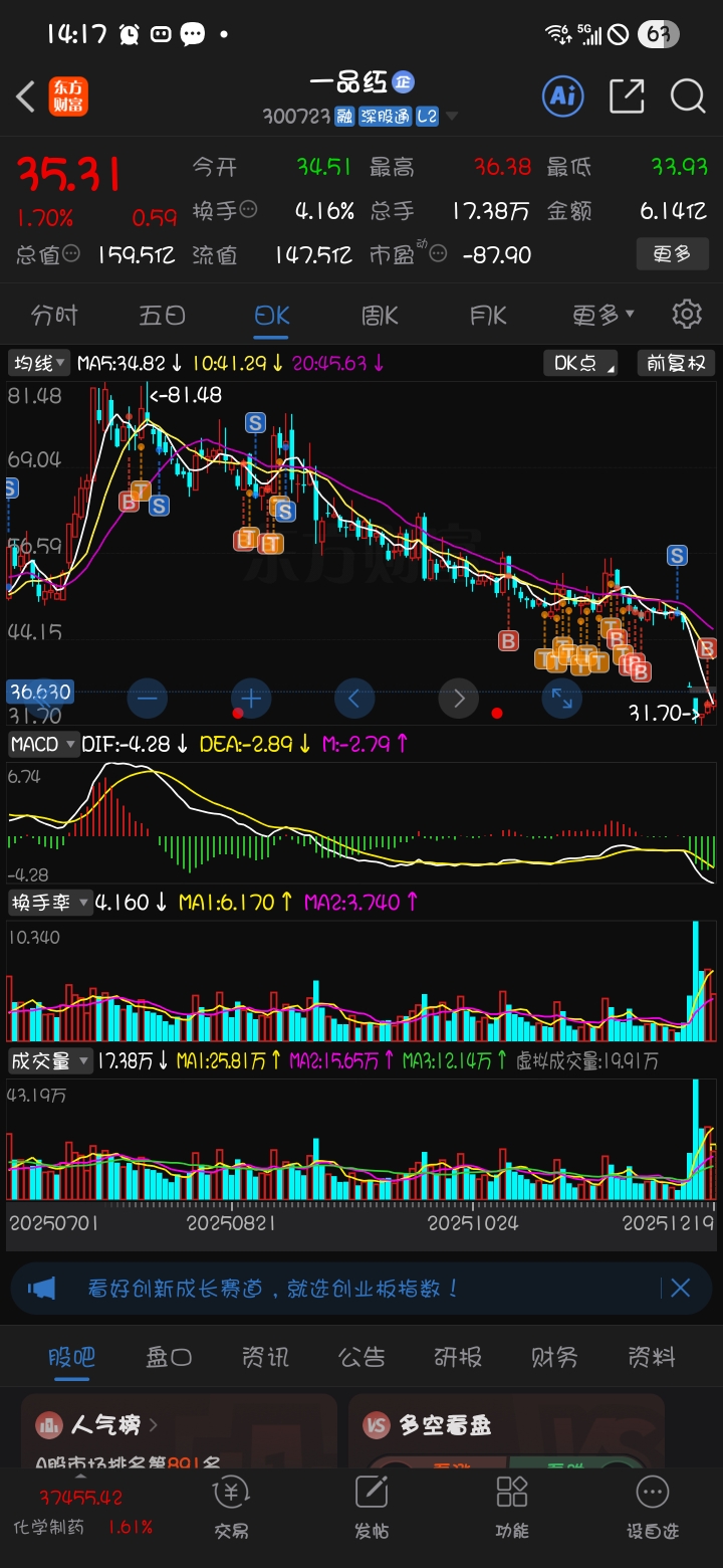 $一品红(SZ300723)$ 腰斩股
