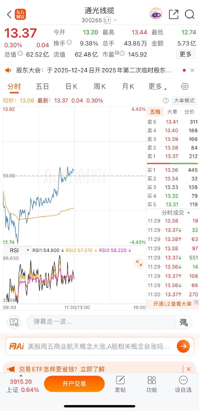 兄弟们!通光线缆300265翻红了!这票我锁仓不动,你们也别慌着卖!走势稳得一批