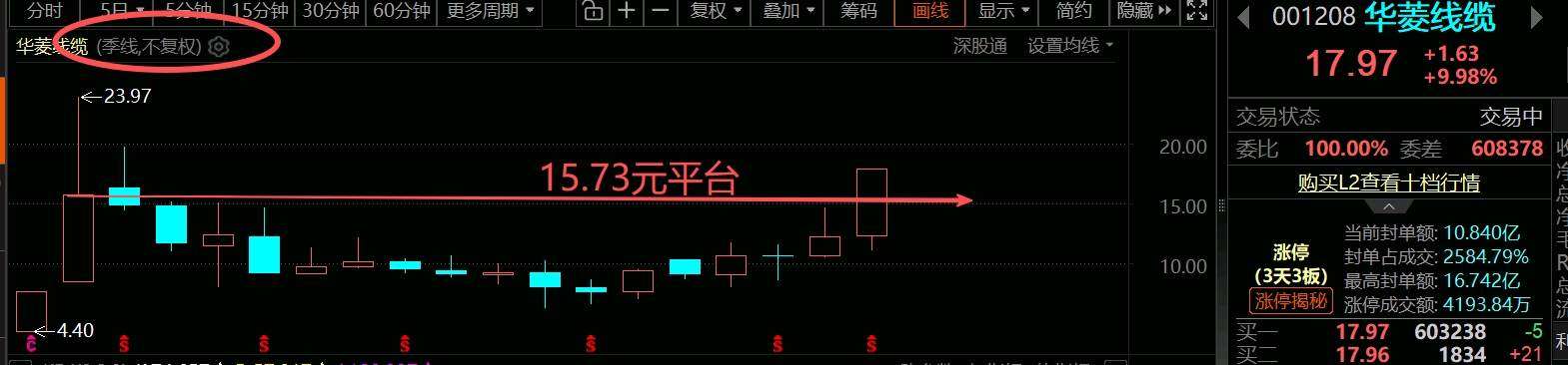 华菱已经突破最高年平台14.83元,现在也突破季最高平台15.73元,上周五涨停板16.34元,上周五盘中也没有出现开板情况(如出现开板会回踩15.73元的)