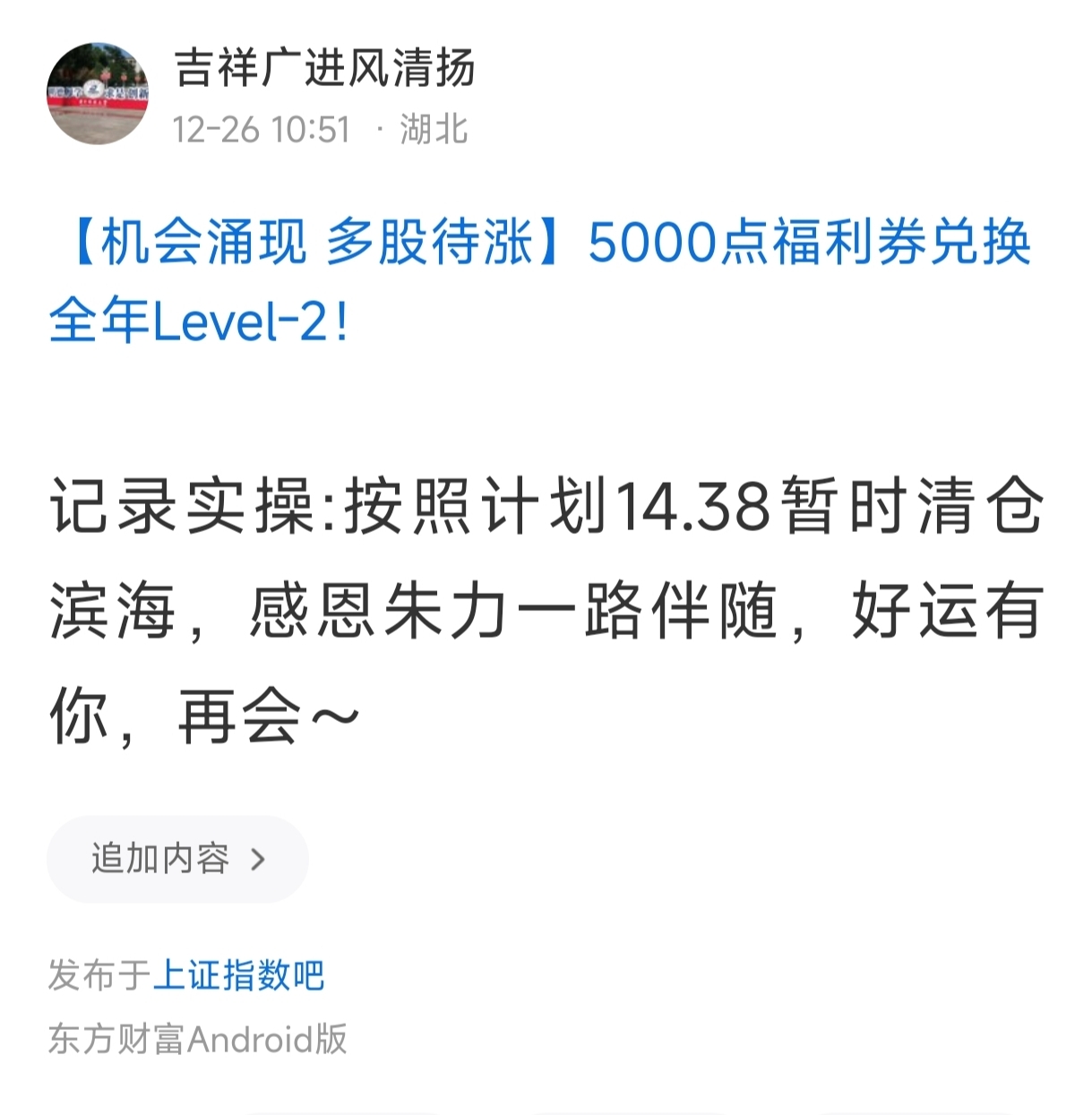 温馨提示: 1.根据《证券法》规定,禁止编造、传播虚假信息或者误导性信息,扰乱证券市场;2.用户在本社区发表的所有资料、言论等仅代表个人观点,与本网站立场无关,不对您构成任何投资建议。用户应基于自己的独立判断,自行决定证券投资并承担相应风险。《东方财富社区管理规定》